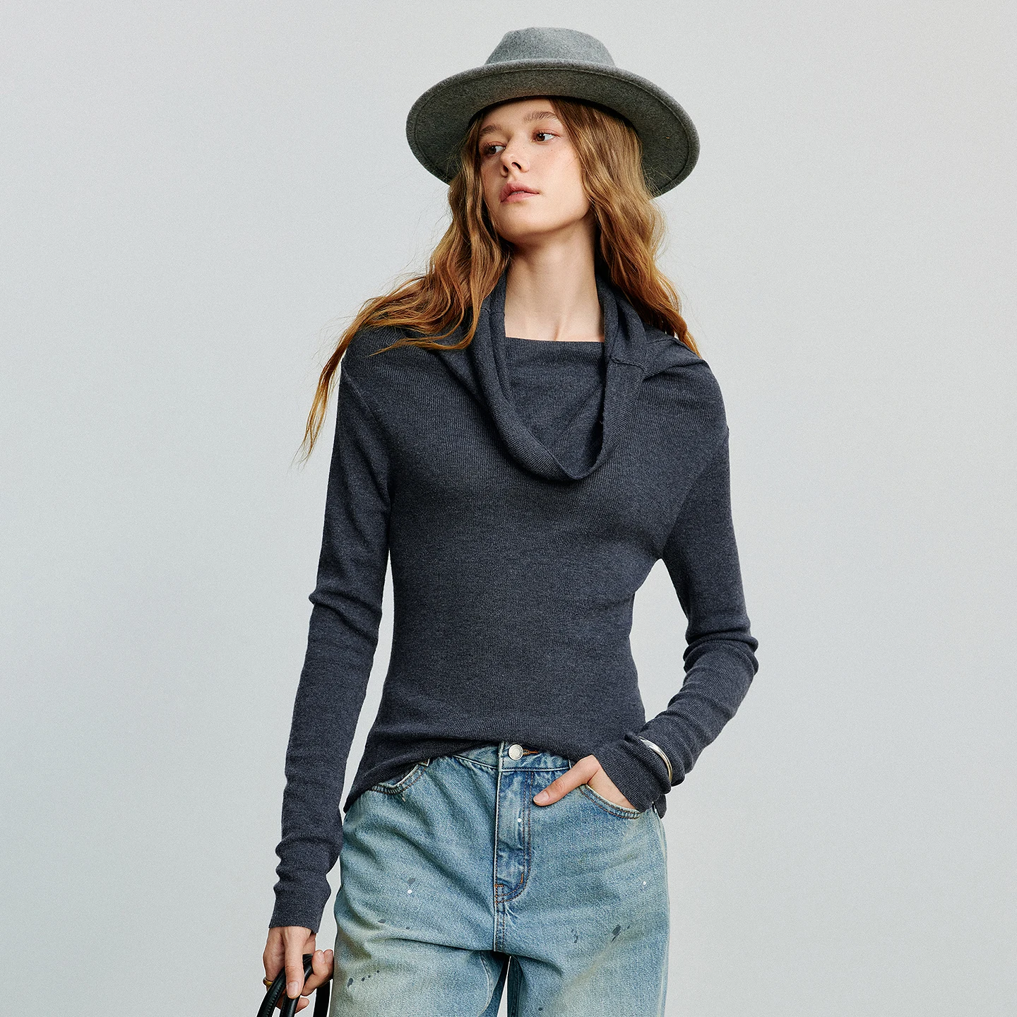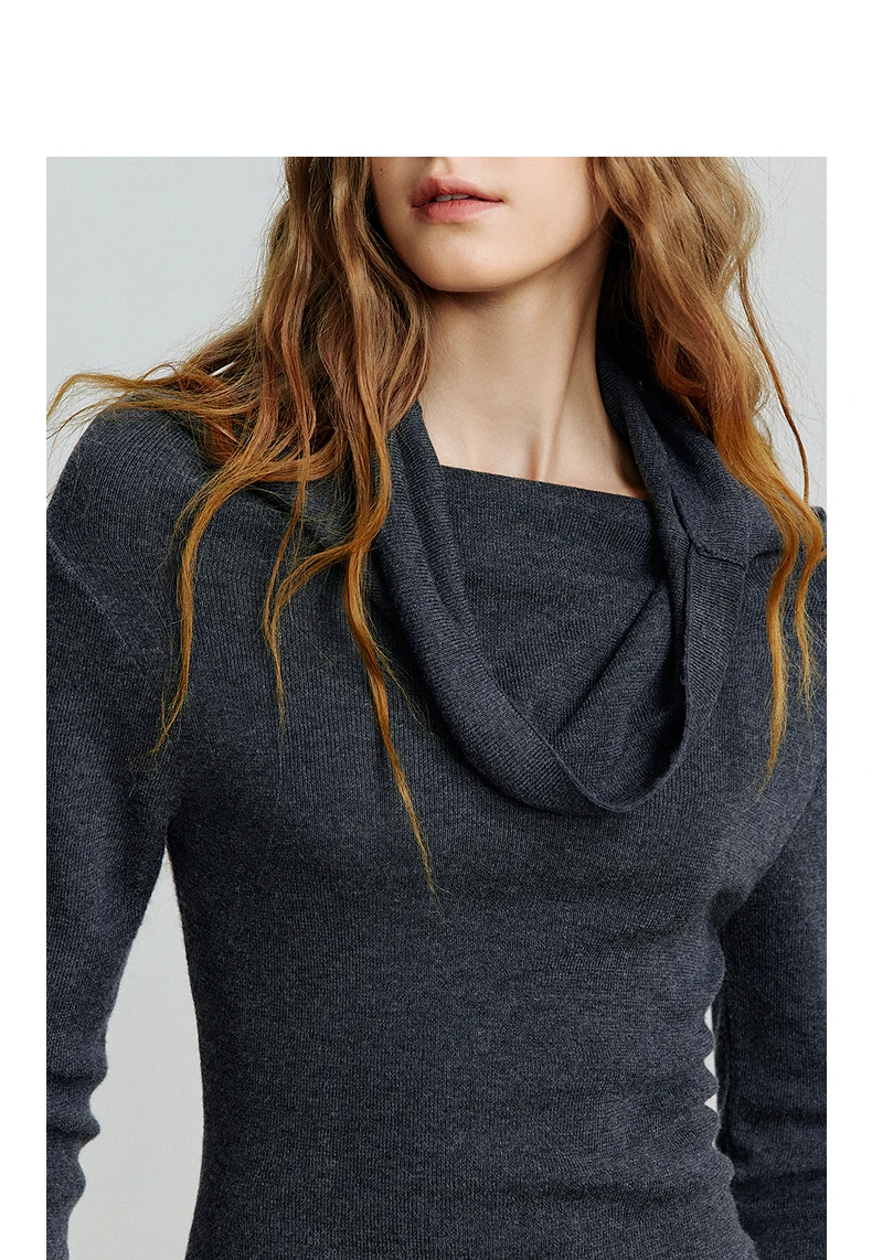 Chic Women’s Gray Wool Sweater with Stylish Slash Collar