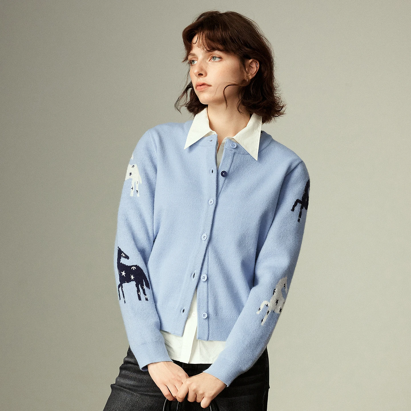 - Elegant O-neck collar and full-length sleeves