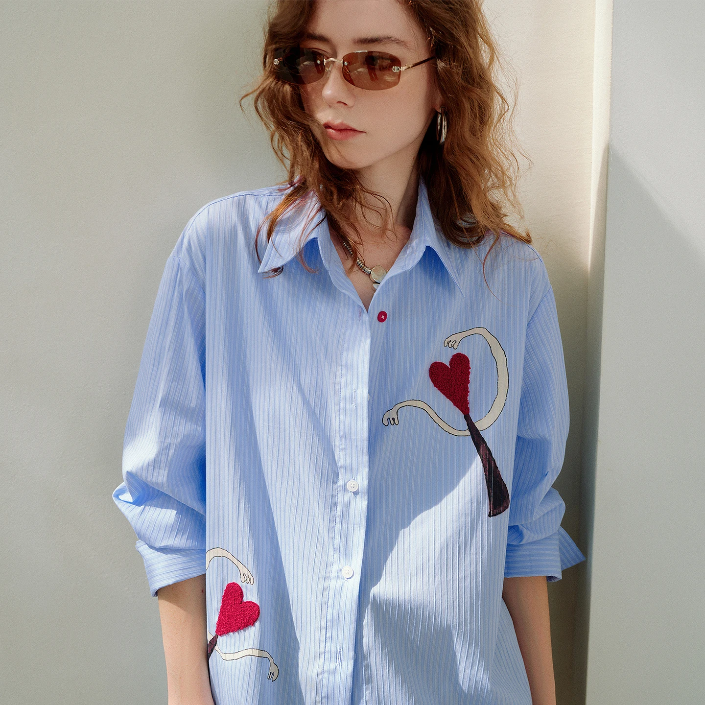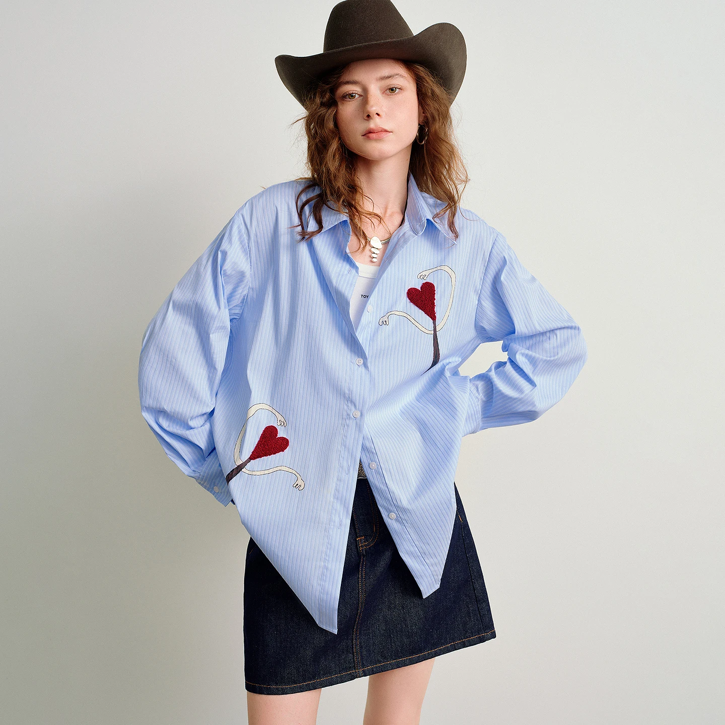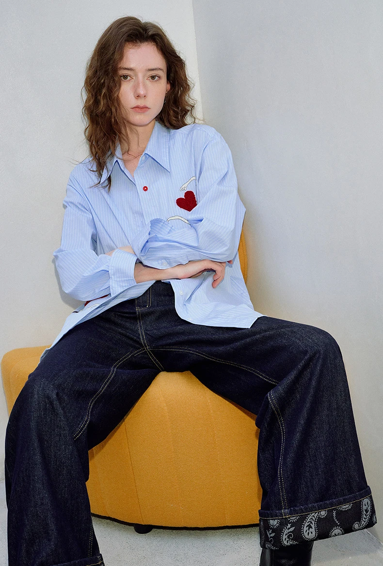 Light Blue Striped Blouse with Fun Heart Pattern for Spring