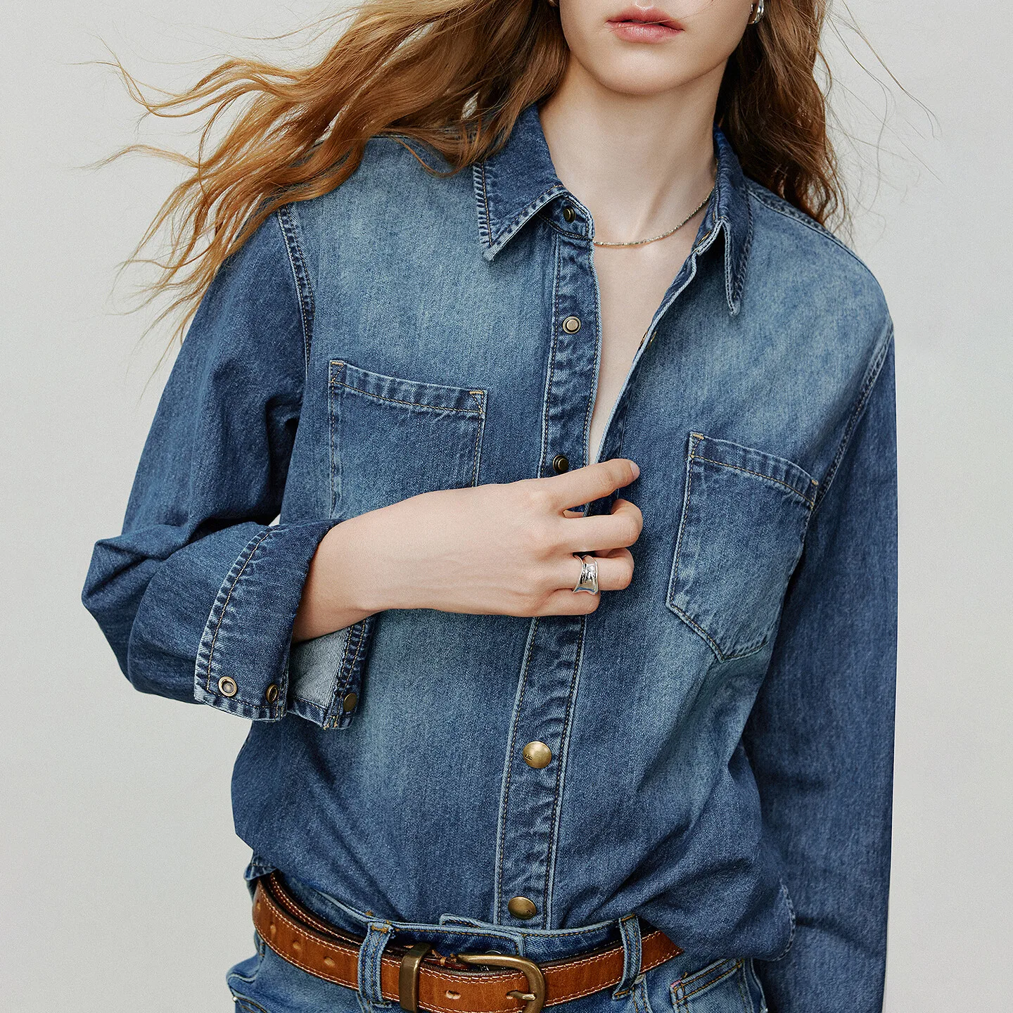 2 reviews for TOYOUTH Women Long Sleeve Blouse Shirt Autumn New Gradient Pure Cotton Cardigan Denim Cardigan Blusa Tops