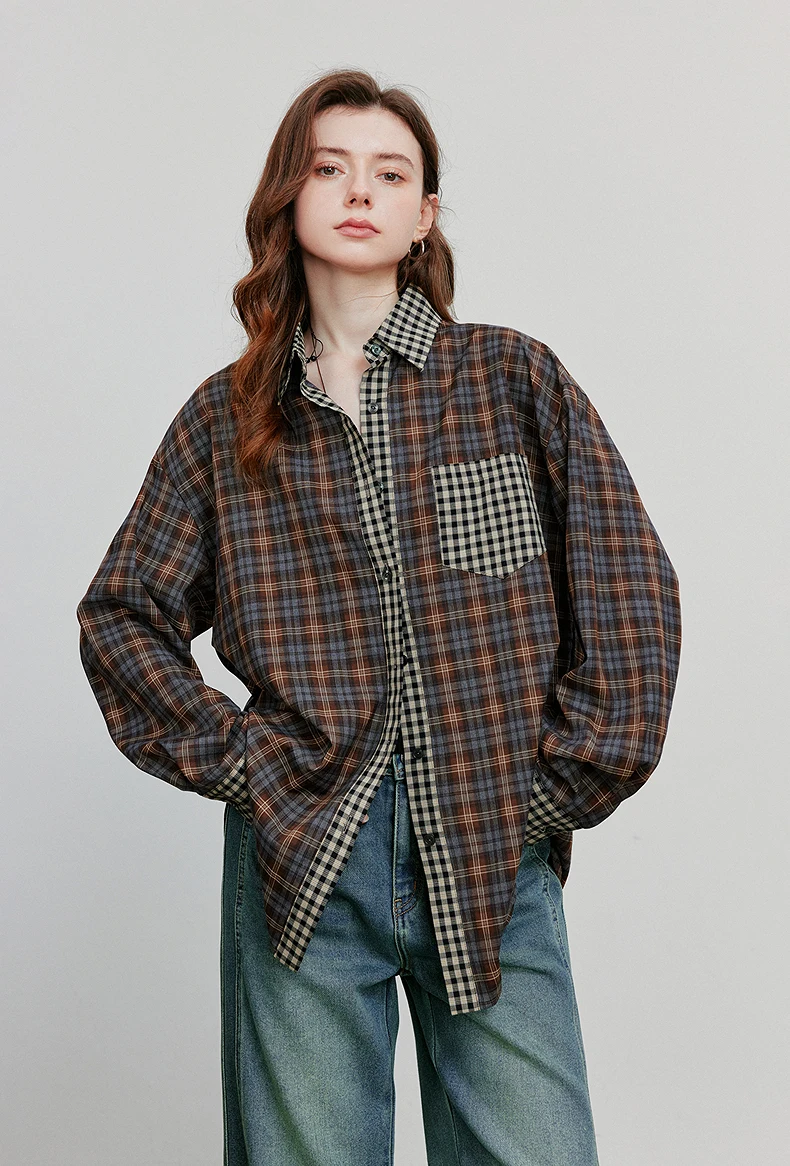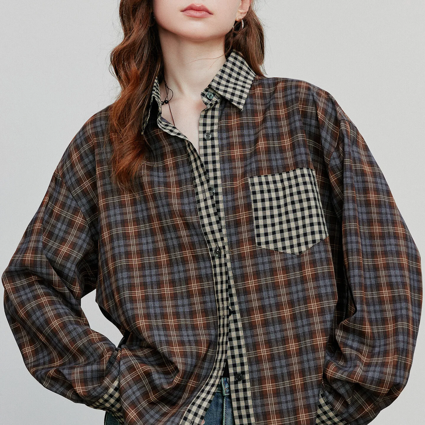 5 reviews for TOYOUTH Women Long Sleeve Blouse Shirt Autumn New Striped Splicing Irregular Grid Simple Shirt Tops
