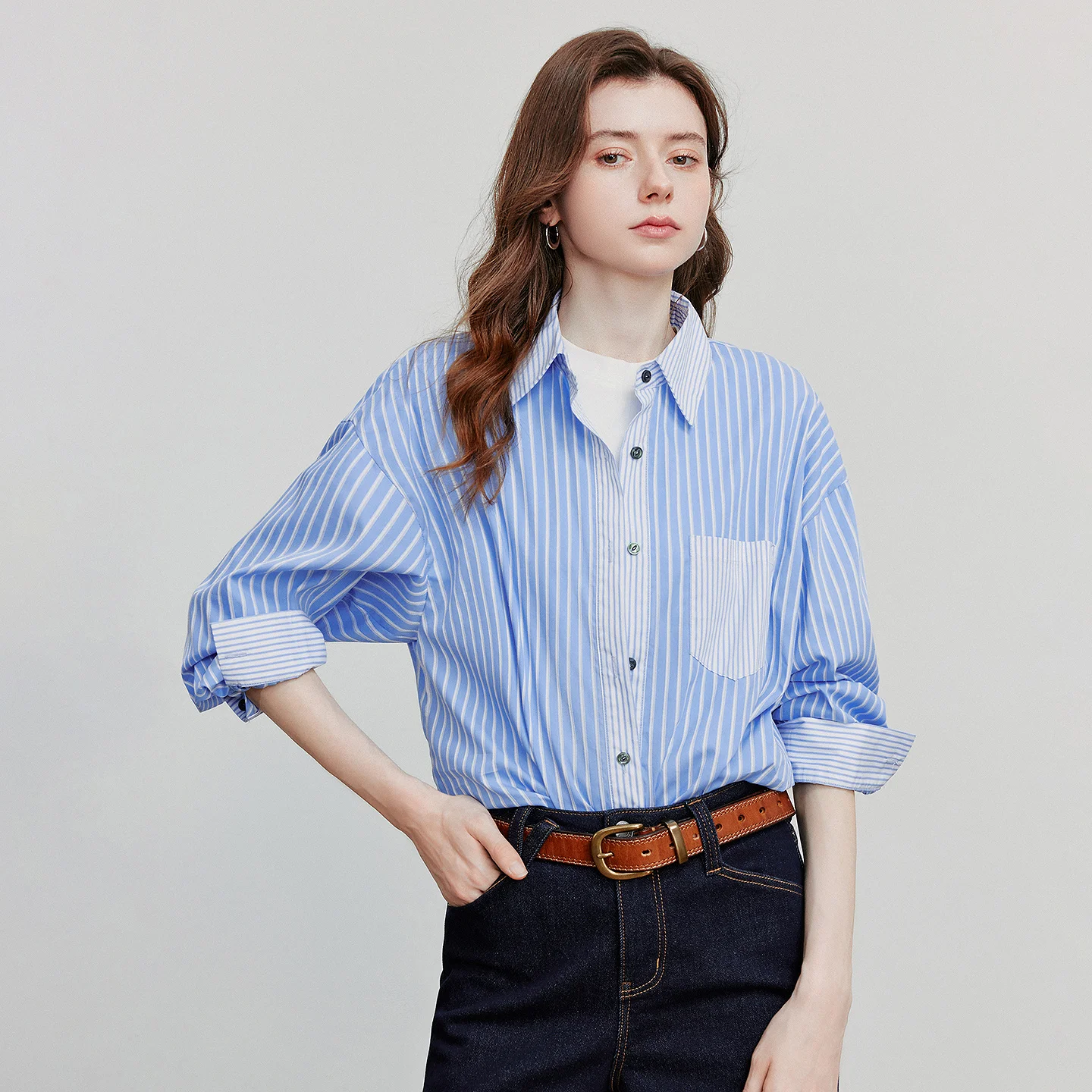 Elevate your autumn wardrobe with the TOYOUTH Long Sleeve Blouse. Featuring a striking striped splicing design, this casual shirt combines comfort and style effortlessly. Crafted from breathable cotton with a midweight feel, it offers a flattering silhouette and functional pockets. Perfect for everyday wear, this versatile piece is a must-have for any fashion-savvy woman.