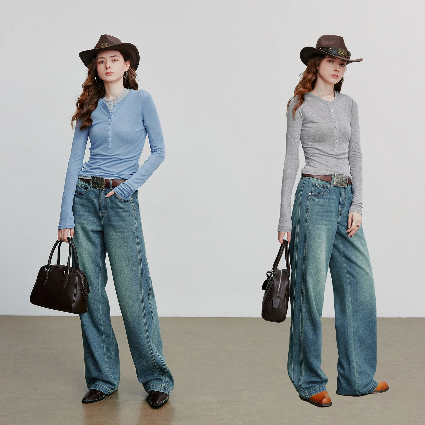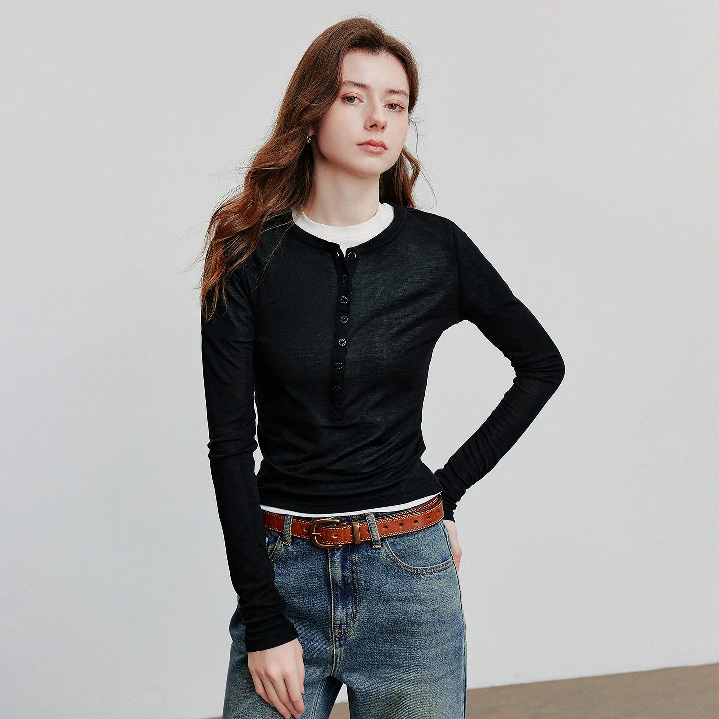 TOYOUTH Women Long Sleeve T-shirt Autumn New Lyocell Wool Fit Lightweight Retro Pullover Tops