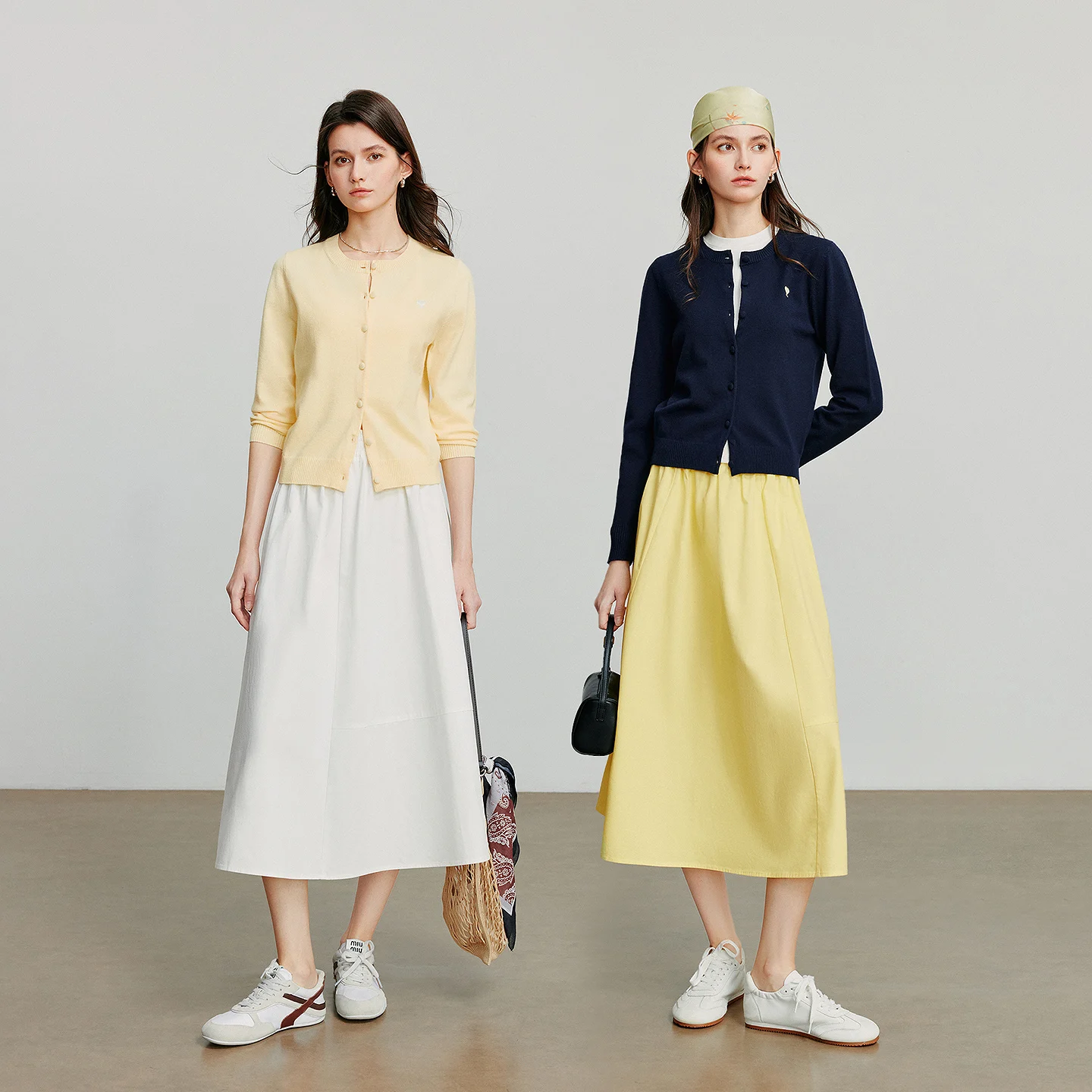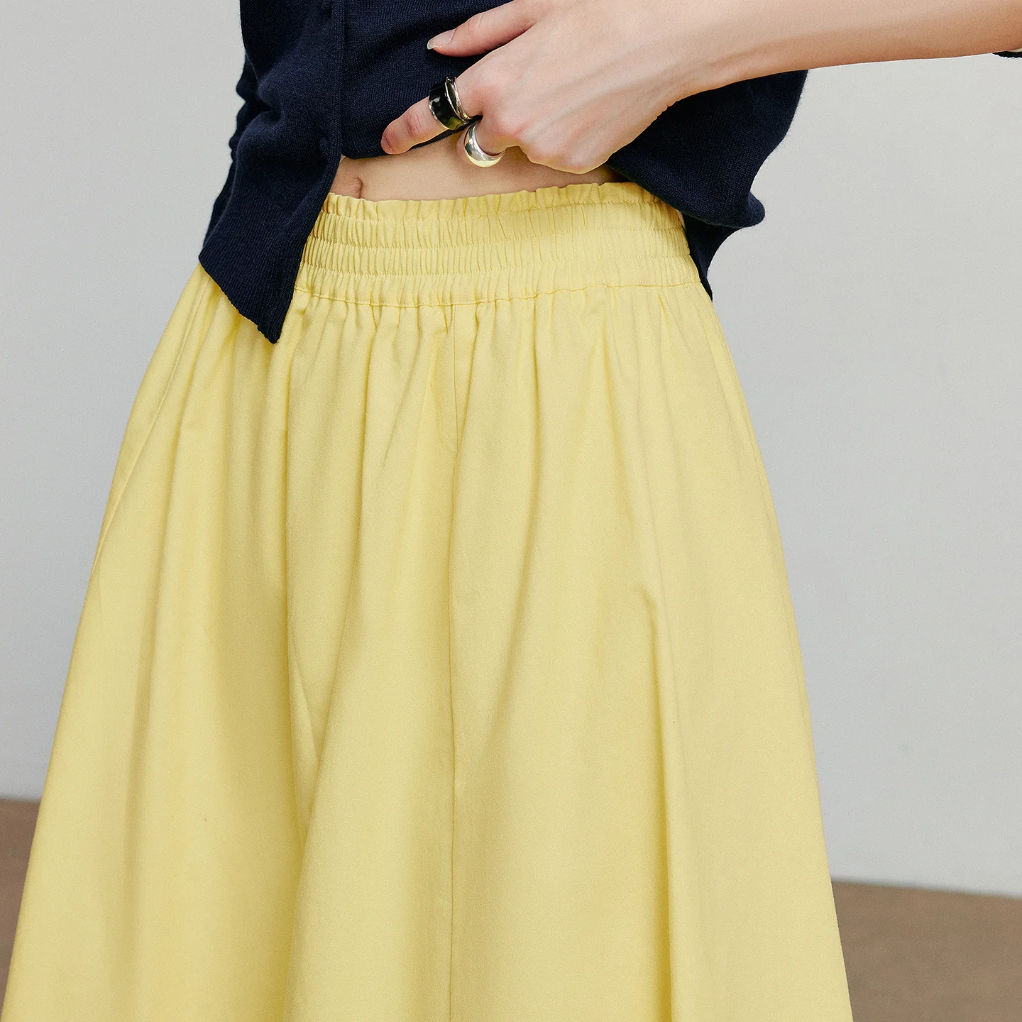 TOYOUTH Women Skirt Autumn New High Waist Pure Cotton Minimalist Umbrella Skirt Lemon Yellow