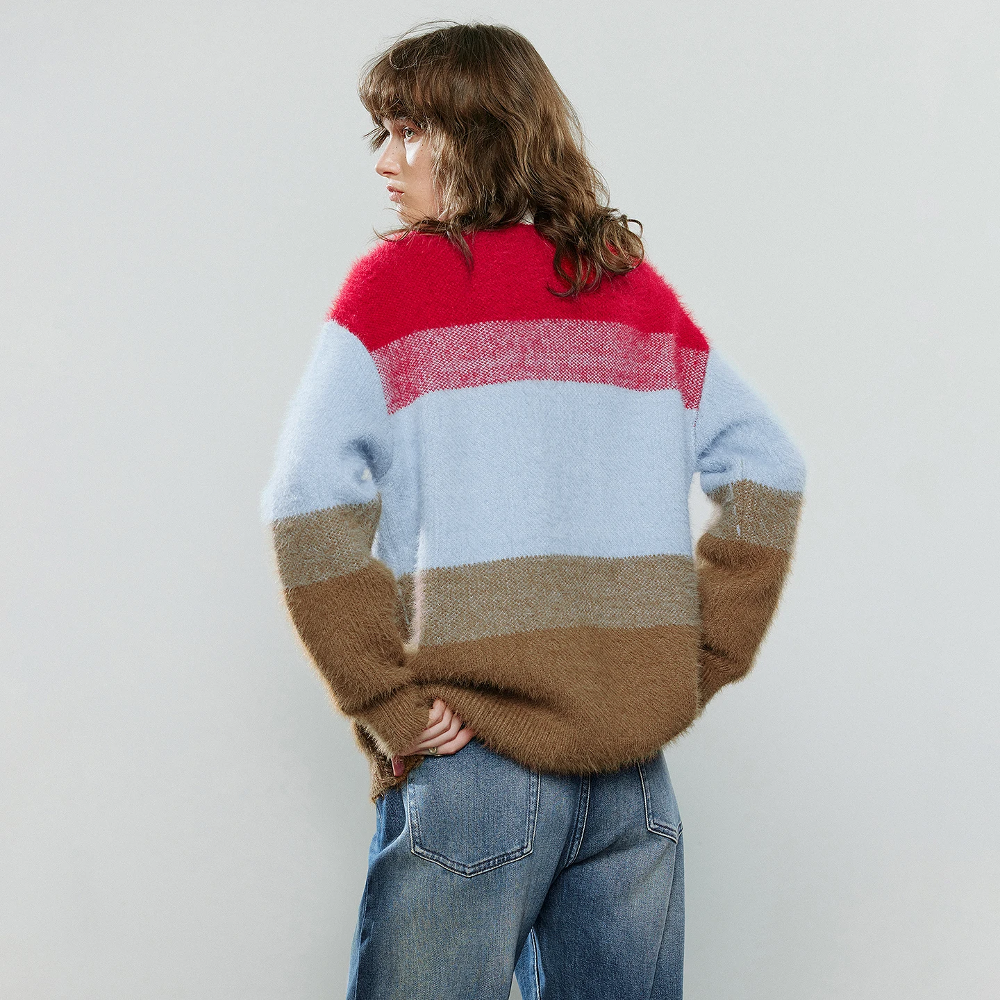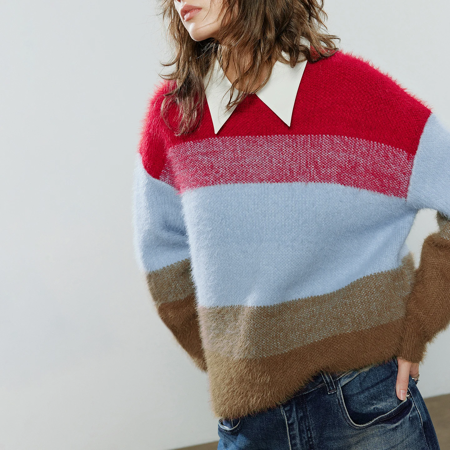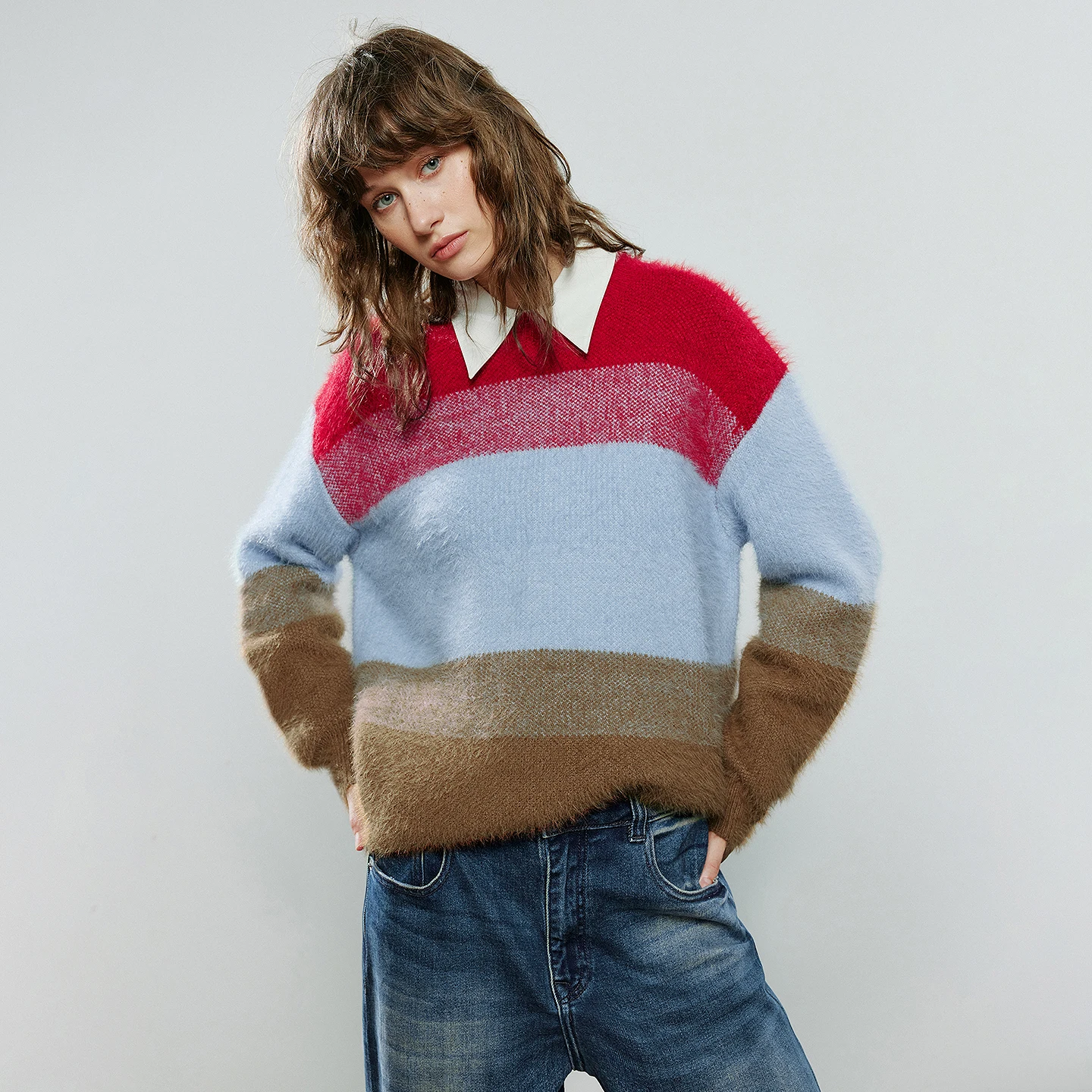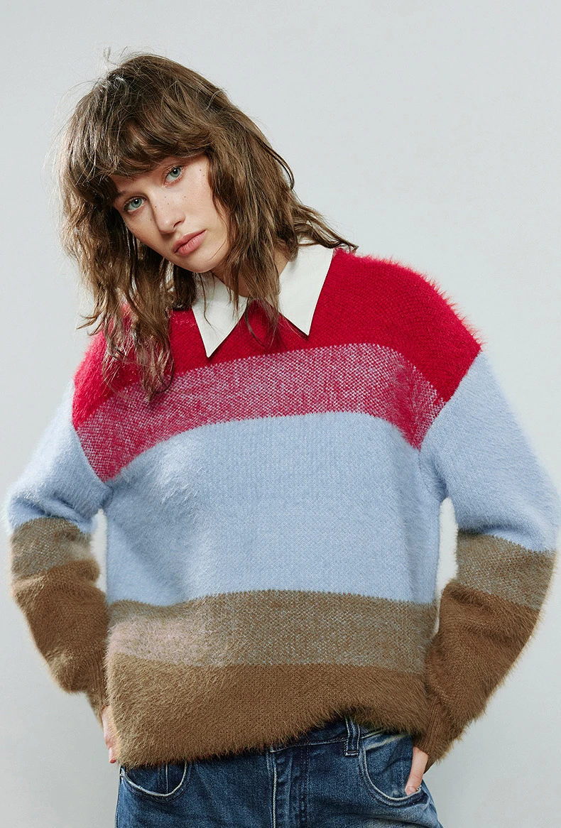 Crafted from a medium weight fabric, this jumper is cozy yet breathable. Available in sizes S, M, L, and XL, it caters to a range of body types. The spliced decoration adds a touch of uniqueness, ensuring you stand out in any setting. For care, simply machine wash and lay flat to dry to maintain its vibrant color and soft texture.