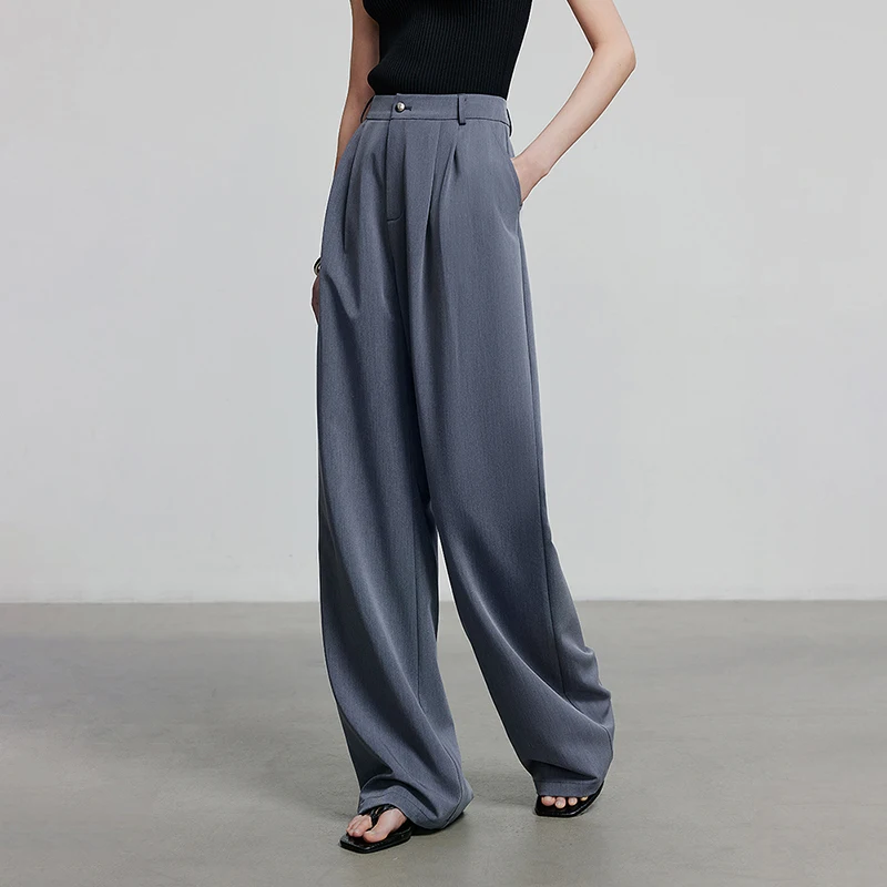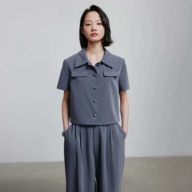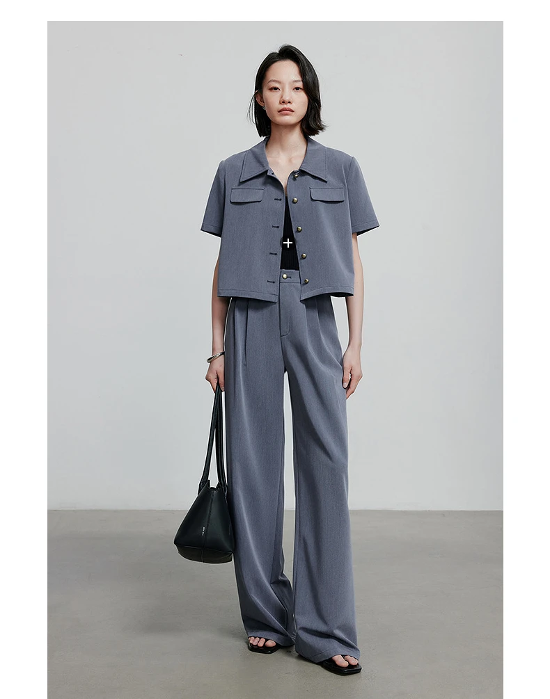 Grey Blue Wide Leg Two Piece Set – Modern Office Summer Outfit