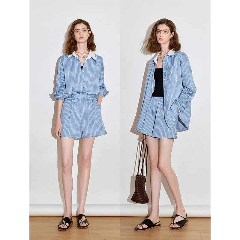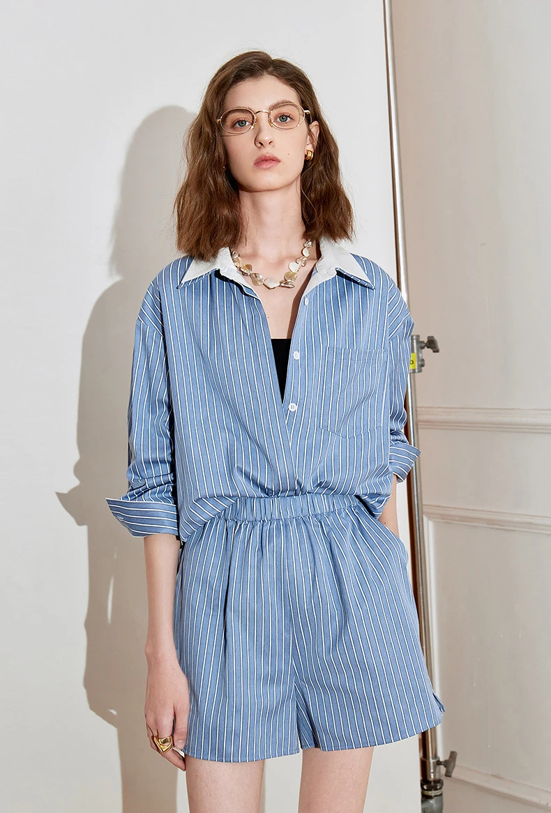 Step into spring with this Stylish Striped Two-Piece Set, designed for the modern woman. Featuring a chic high-waist and elegant turn-down collar, this set combines comfort with sophistication. Crafted from a luxurious woven blend, it offers a flattering silhouette and effortless style. Perfect for office or casual outings, this versatile ensemble elevates your wardrobe. Embrace timeless elegance and make a statement this season.