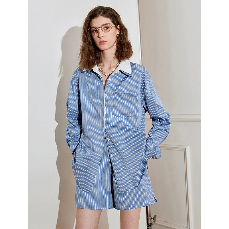 Embrace the vibrant spirit of spring with this versatile outfit that can transition seamlessly from day to night. The striking blue color combined with the classic striped pattern adds a touch of modern elegance to your wardrobe, ensuring you make a statement wherever you go.