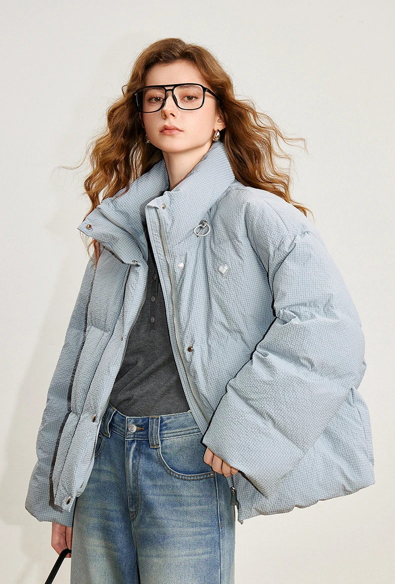TOYOUTH Women’s Down Jacket Winter New 90% White Duck Down Bubble Grid Loose Puffer Jacket Warm Outerwear
