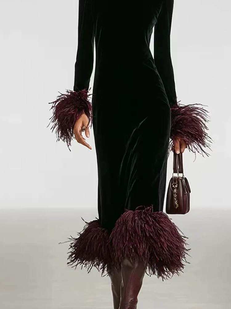 Designed with a natural waistline and ankle-length cut, the dress pairs well with minimalist boots or sleek flats for versatile wear from work to evening occasions.