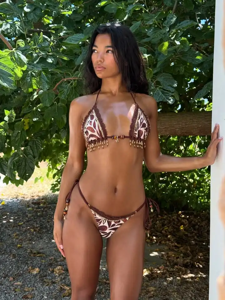 This bikini set fits true to size and includes adjustable features for a personalised fit. The mid-waist bottoms sit comfortably on the hips, allowing freedom of movement without sacrificing coverage. The wire-free top supports gently without structured shaping, prioritising comfort and flexibility throughout wear.