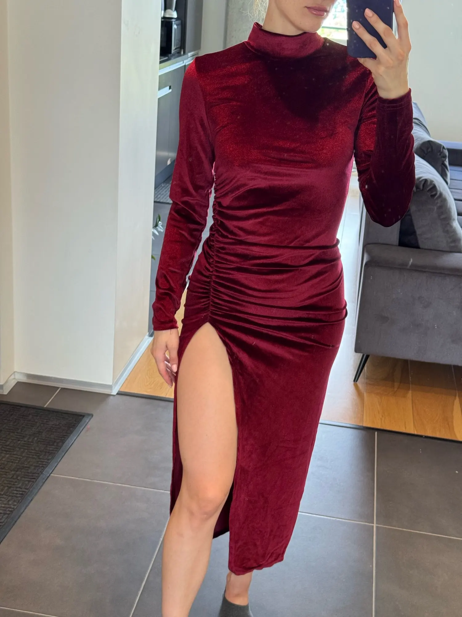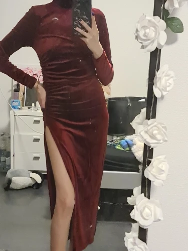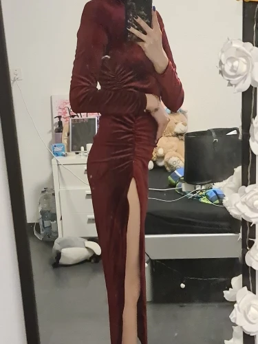 27 reviews for Velvet Ruched Midi Dress with Side Slit