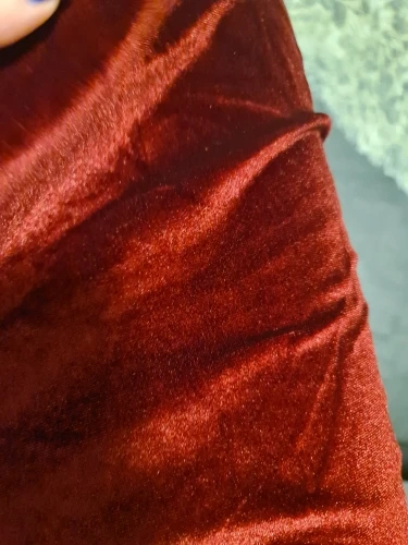 Fabric & Care: Made from a synthetic velvet knit combining cotton and polyester, the fabric offers a soft handfeel with moderate warmth suitable for cooler seasons. The high stretch content allows for flexibility and comfort. Care instructions typically recommend gentle washing to maintain fabric integrity and appearance.