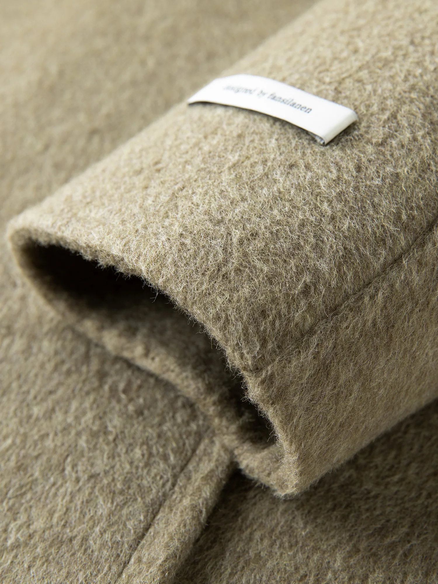 This green wool blazer is a harmonious blend of sophistication and comfort, designed for the woman who values quality craftsmanship. Its tailored silhouette and single-breasted closure effortlessly transition from boardroom meetings to weekend brunches.