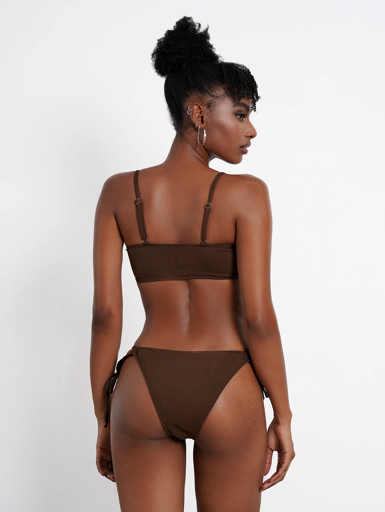 Unveil your inner goddess with this Hollow Push-Up Bikini Set, crafted for elegance and style. Featuring a chic high cut, lace-up details, and supportive underwire, this two-piece set offers a flattering silhouette for every body. Made from luxurious nylon and spandex, it ensures comfort and confidence at the beach or poolside. Available in timeless black and brown, this stunning swimwear is a must-have for your spring wardrobe. Make a splash with Vigo Casey's exquisite design.