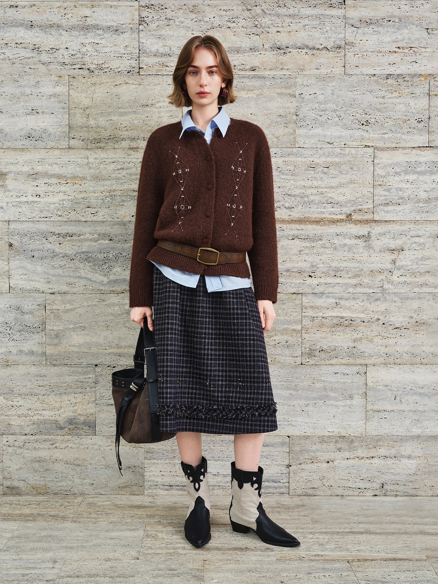 Q: Can this cardigan be worn for both casual and more polished occasions?A: Absolutely. Its subtle rhinestone detailing and classic plaid pattern allow it to transition smoothly from casual daywear to refined evening looks.