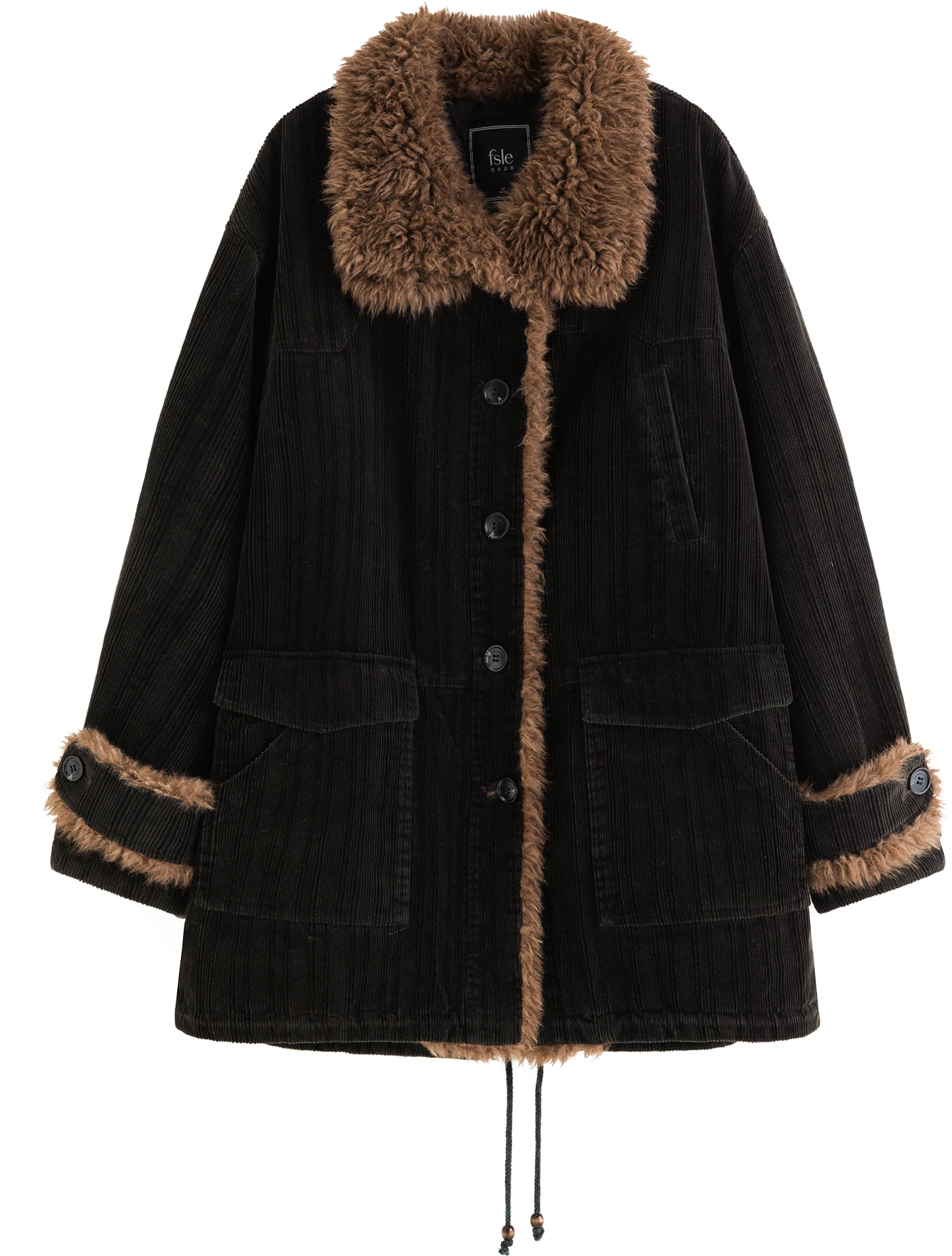 - Closure: Single-breasted with turn-down collar