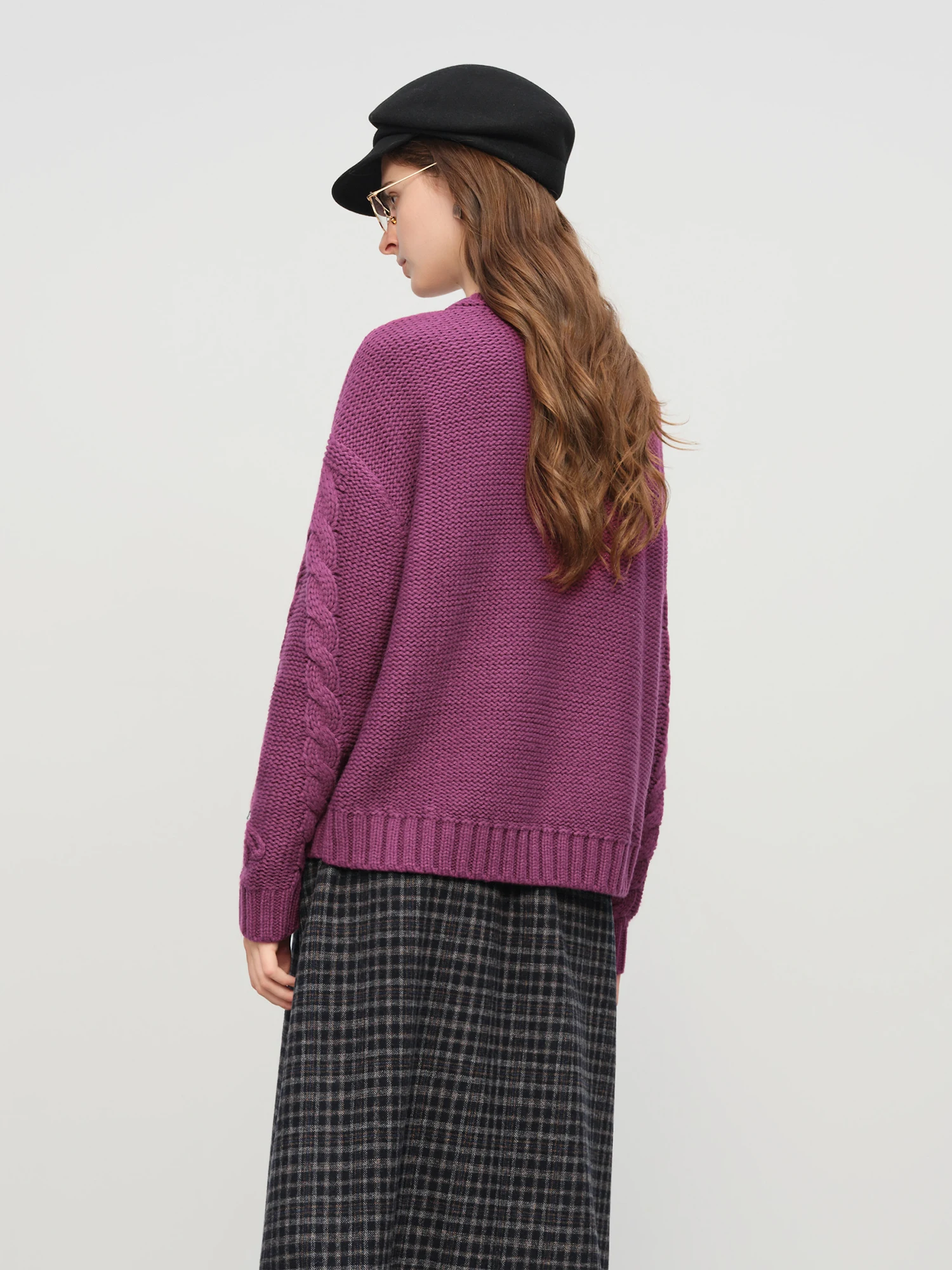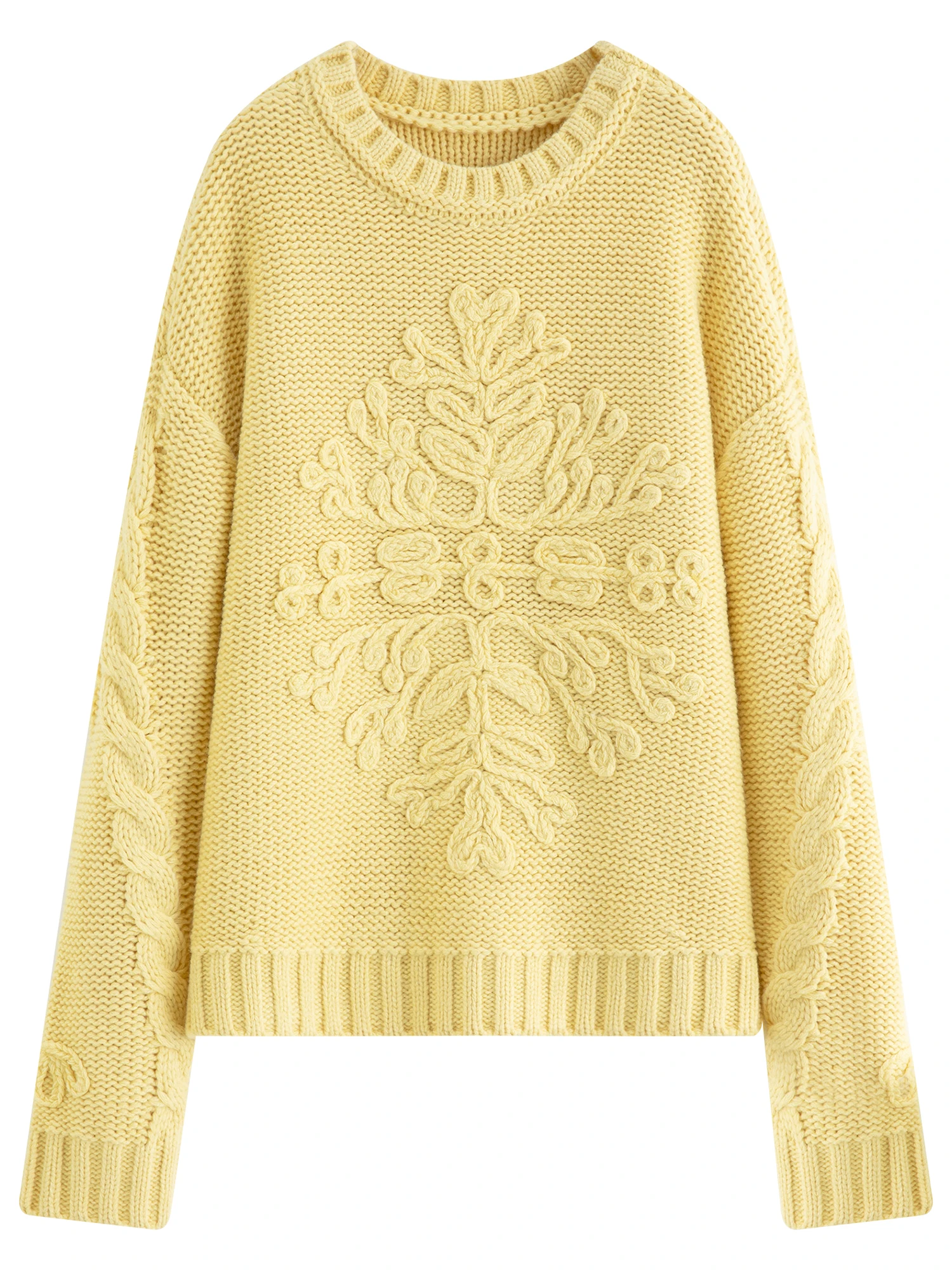 Fit Notes: This sweater is designed with a slightly stretchy knit that adapts to your shape without constriction. Its loose fit creates a relaxed, comfortable profile that suits a range of body types. Available in sizes S, M, and L, it caters primarily to women aged 25-34 seeking a versatile layering piece.