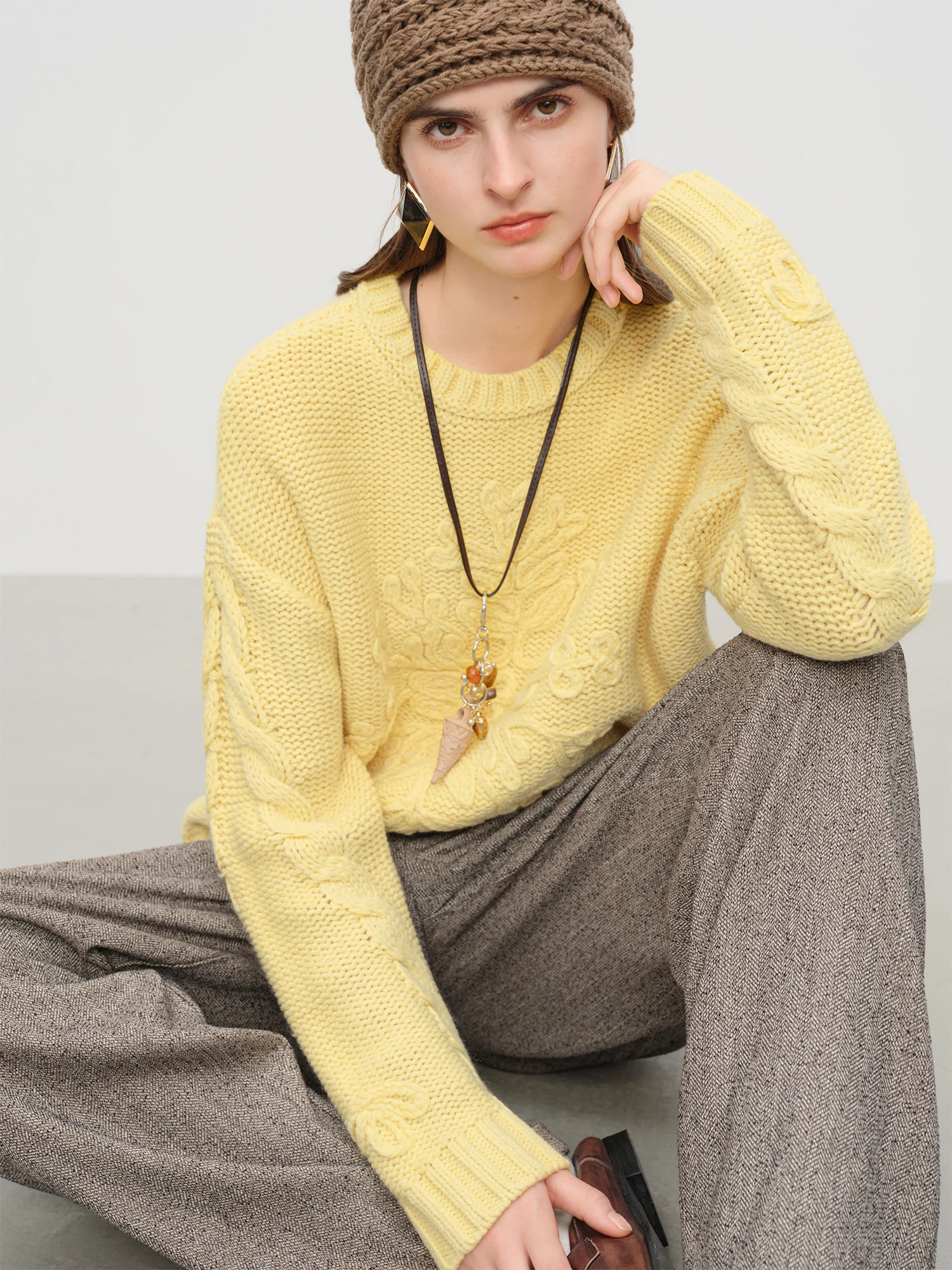 Vintage-Inspired Crochet Knit Sweater in Yellow or Purple