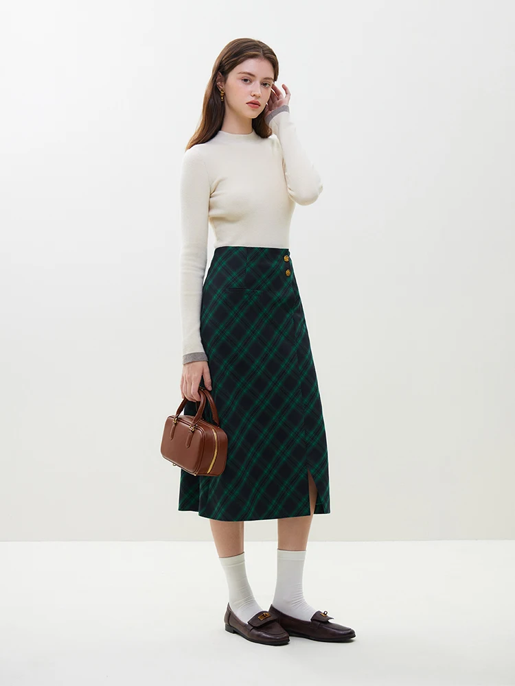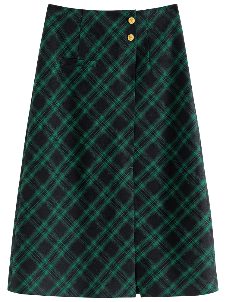 Q: Can this skirt be styled for both work and casual occasions?A: Absolutely. Its classic plaid pattern and tailored A-line silhouette make it versatile enough for office wear as well as more relaxed, casual settings.