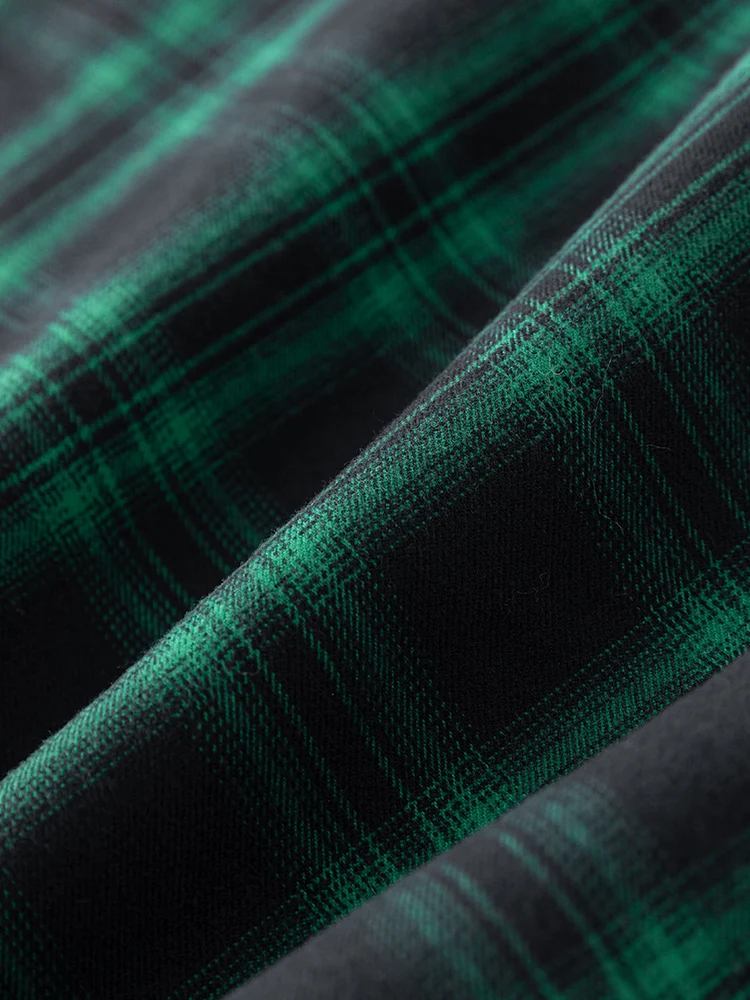 - Pattern: A muted plaid in warm seasonal tones lends versatility and understated sophistication.