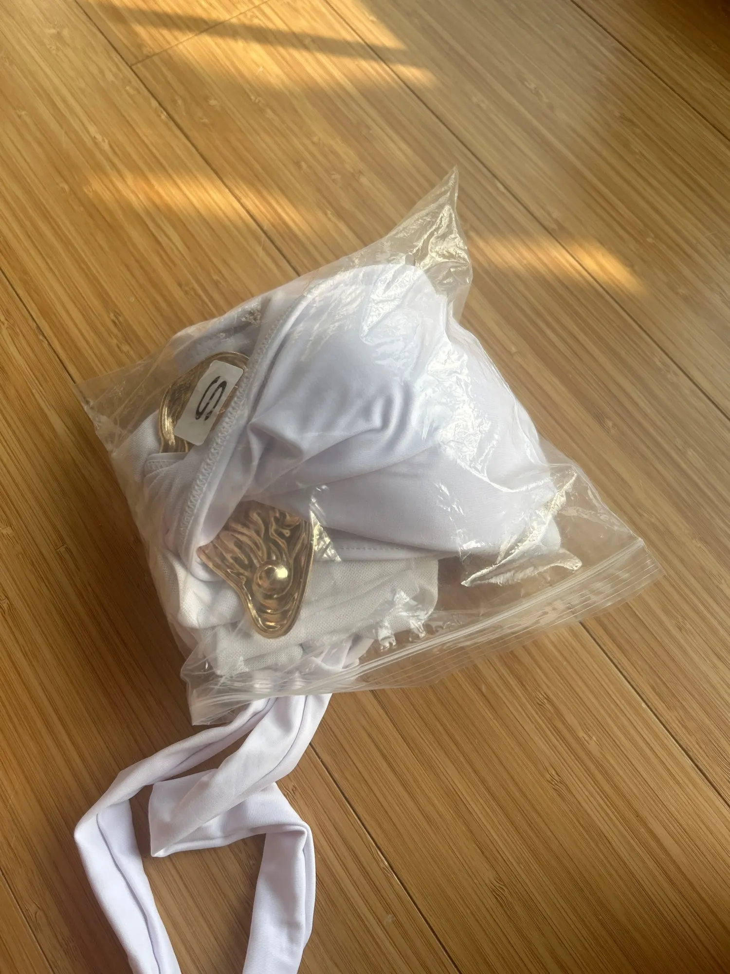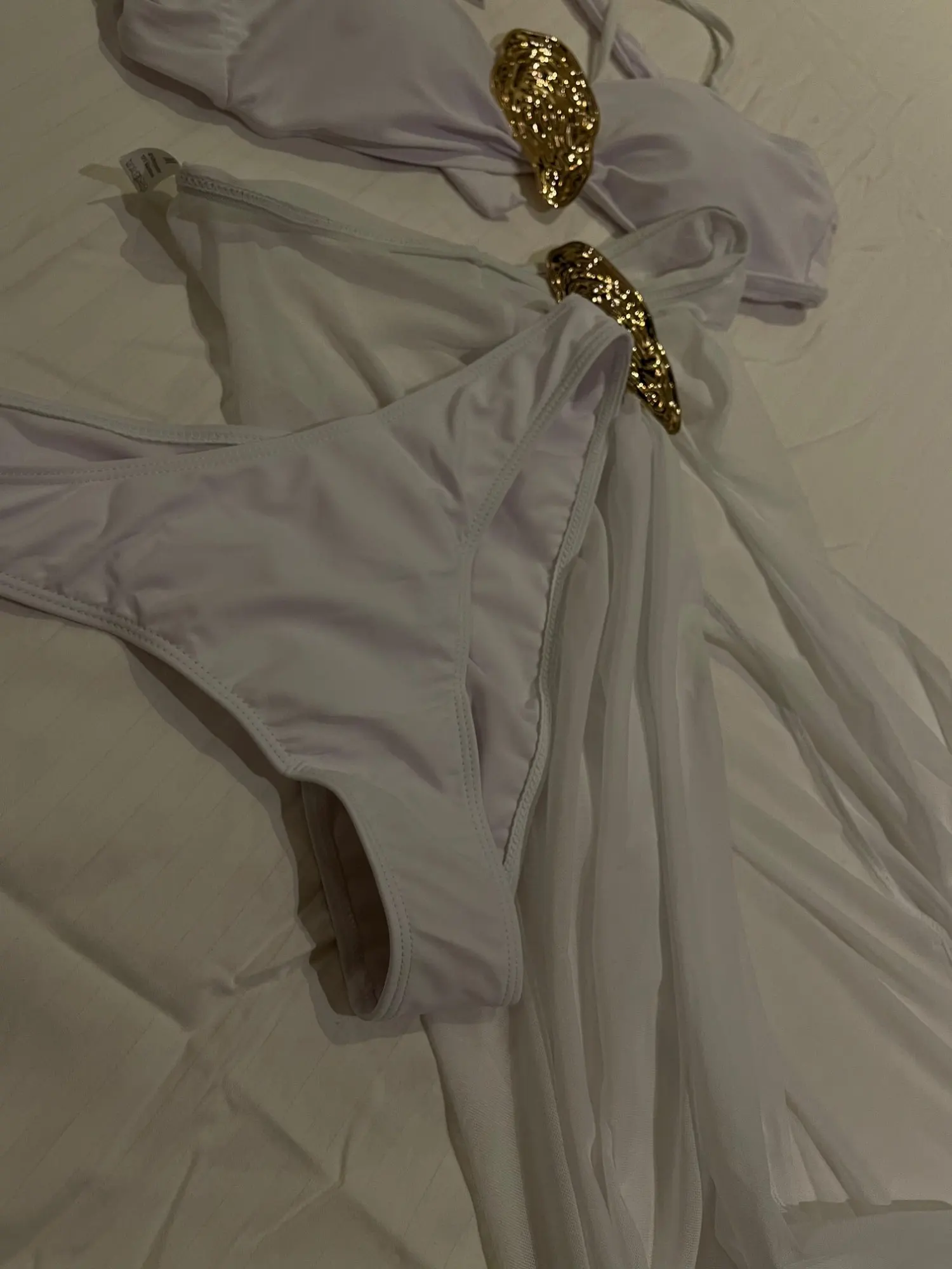 17 reviews for Vintage White 3-Piece Bikini Set – Mesh Skirt & Buckle Details