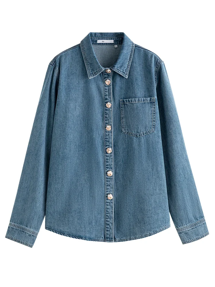 The Vivian Sky Blue Cotton Denim Shirt redefines casual refinement with its streamlined silhouette and thoughtfully selected materials. Crafted from 100% natural cotton broadcloth, this lightweight shirt offers a slight stretch that ensures comfort while maintaining a slim, tailored fit. Designed for the discerning woman, it features a delicate V-neck collar and full-length sleeves, making it an adaptable choice for the cooler months of autumn and winter.