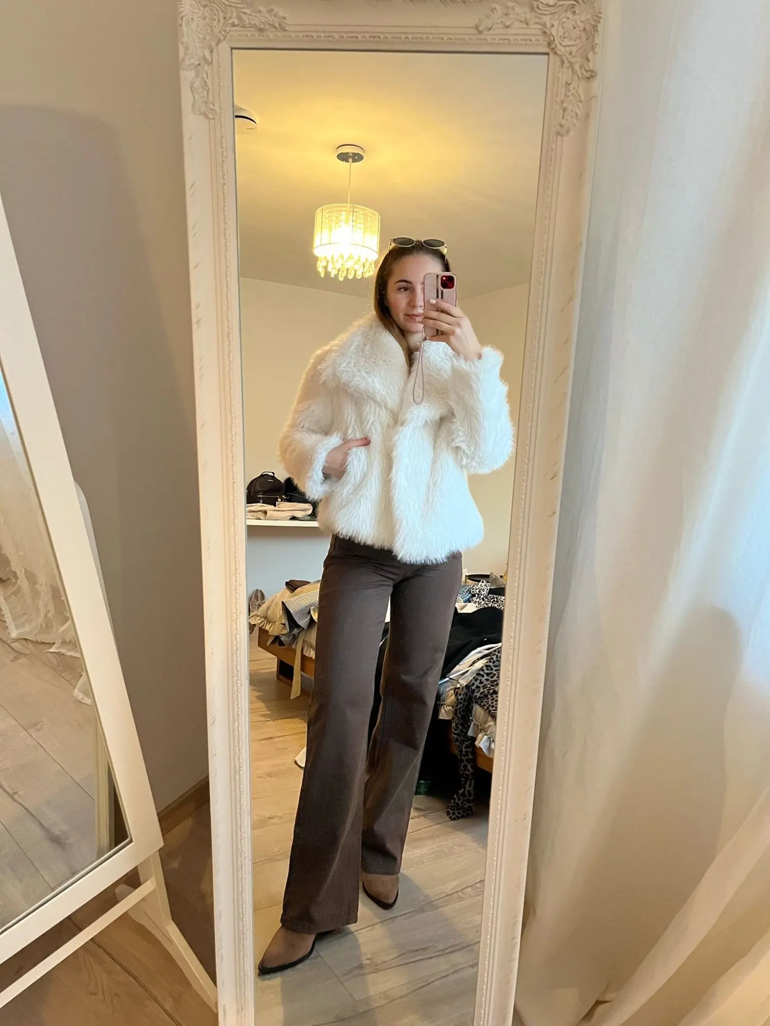 5 reviews for White Faux Fur Coat with Turn-Down Collar and Covered Buttons