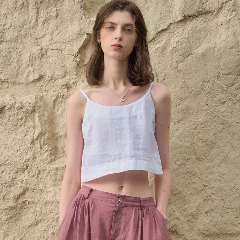 Discover refined summer style with the White Linen Crop Top, tailored for those who appreciate a sleek, slim fit. Crafted from a polyester blend with a slight stretch, this sleeveless top features a flattering V-neckline and a natural waistline for a modern silhouette.