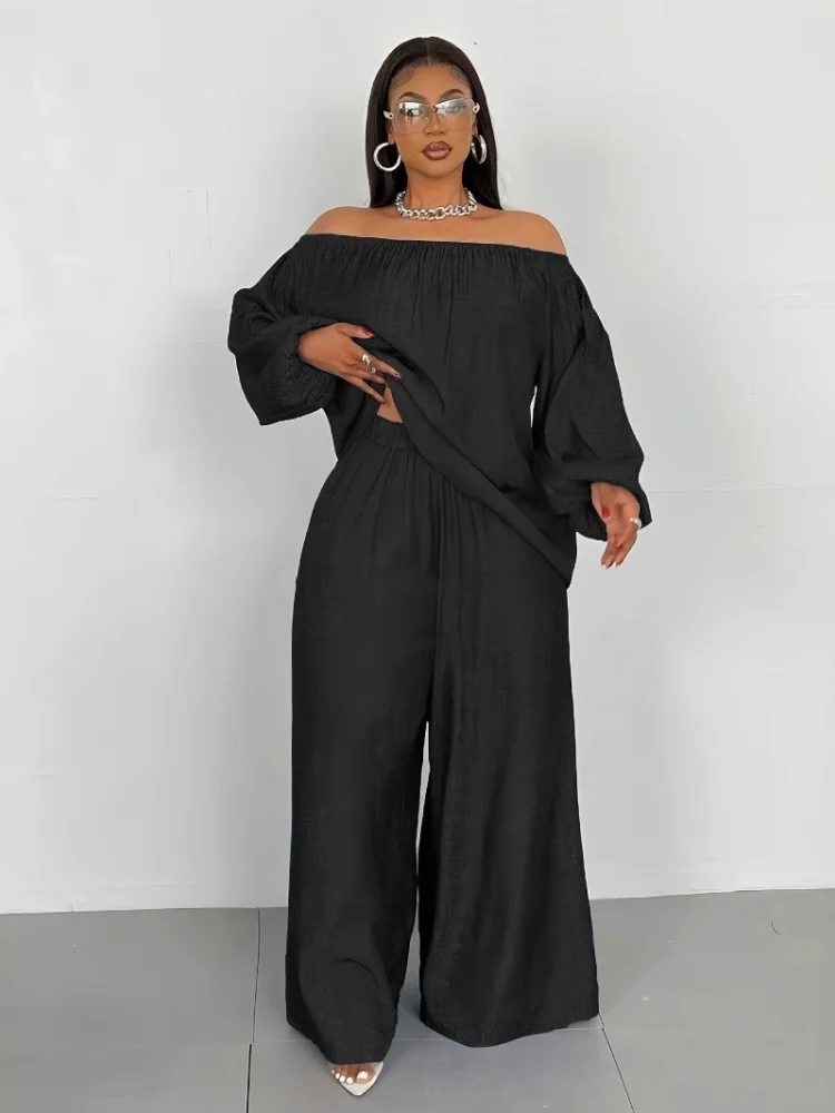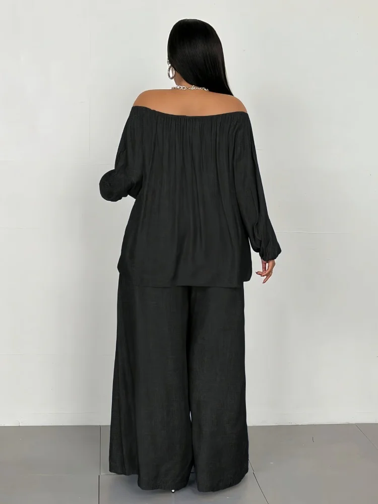 Chic Plus Size Spring Set: One Shoulder Top & Wide Leg Pants