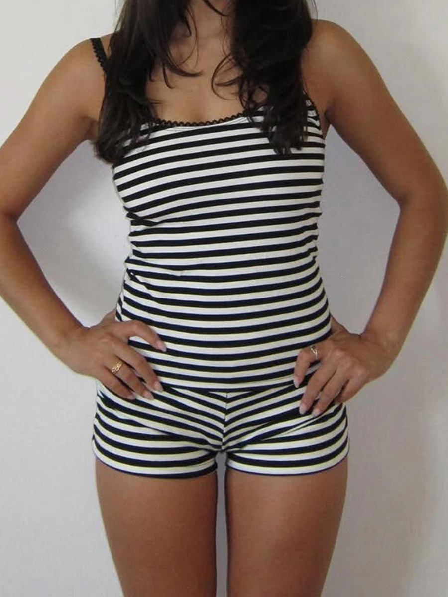 Indulge in luxurious comfort with this elegant 2-piece loungewear set, featuring a chic sleeveless cami top and matching shorts adorned with playful polka dots and stripes. Crafted from soft synthetic fibers, this lightweight ensemble offers a flattering fit and effortless style, perfect for summer relaxation. Experience everyday elegance.