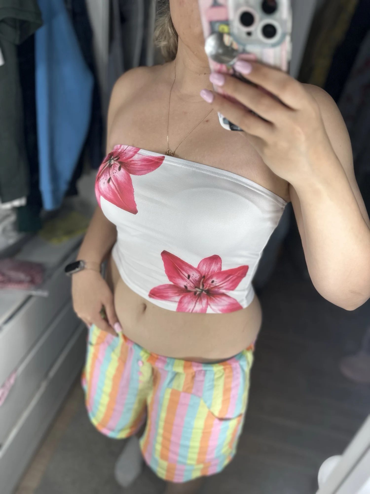 - Short clothing length (4 – 16 inches), ideal for pairing with high-waisted skirts or shorts.