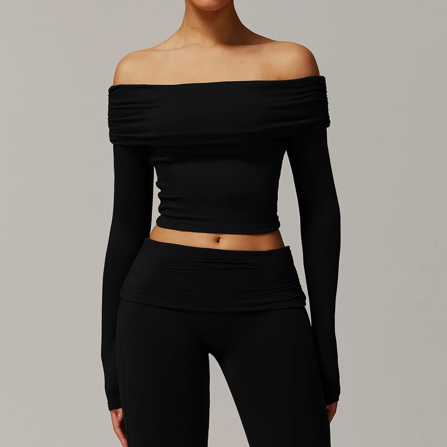 Chic Off-Shoulder Crop Top for Yoga & Fitness Elegance