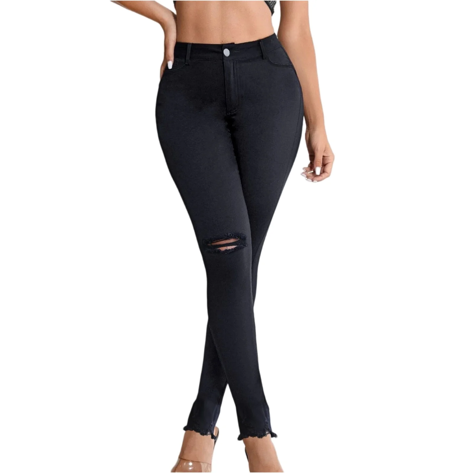 Pair these jeans with a fitted blouse for a polished office look, or style them with a cozy sweater for a casual weekend vibe. Their timeless black color makes them easy to mix and match with your favorite accessories, ensuring you look put-together without sacrificing comfort.