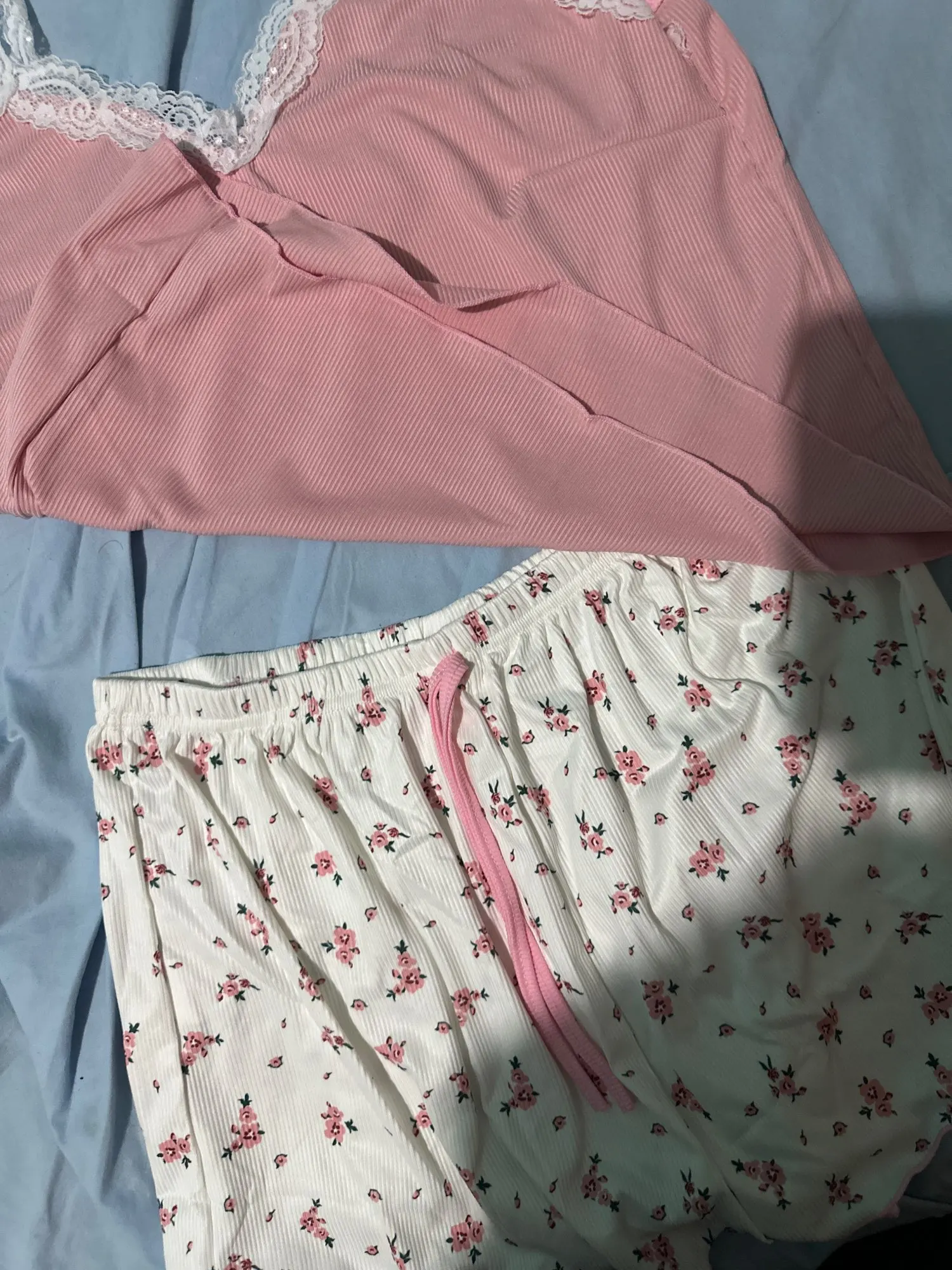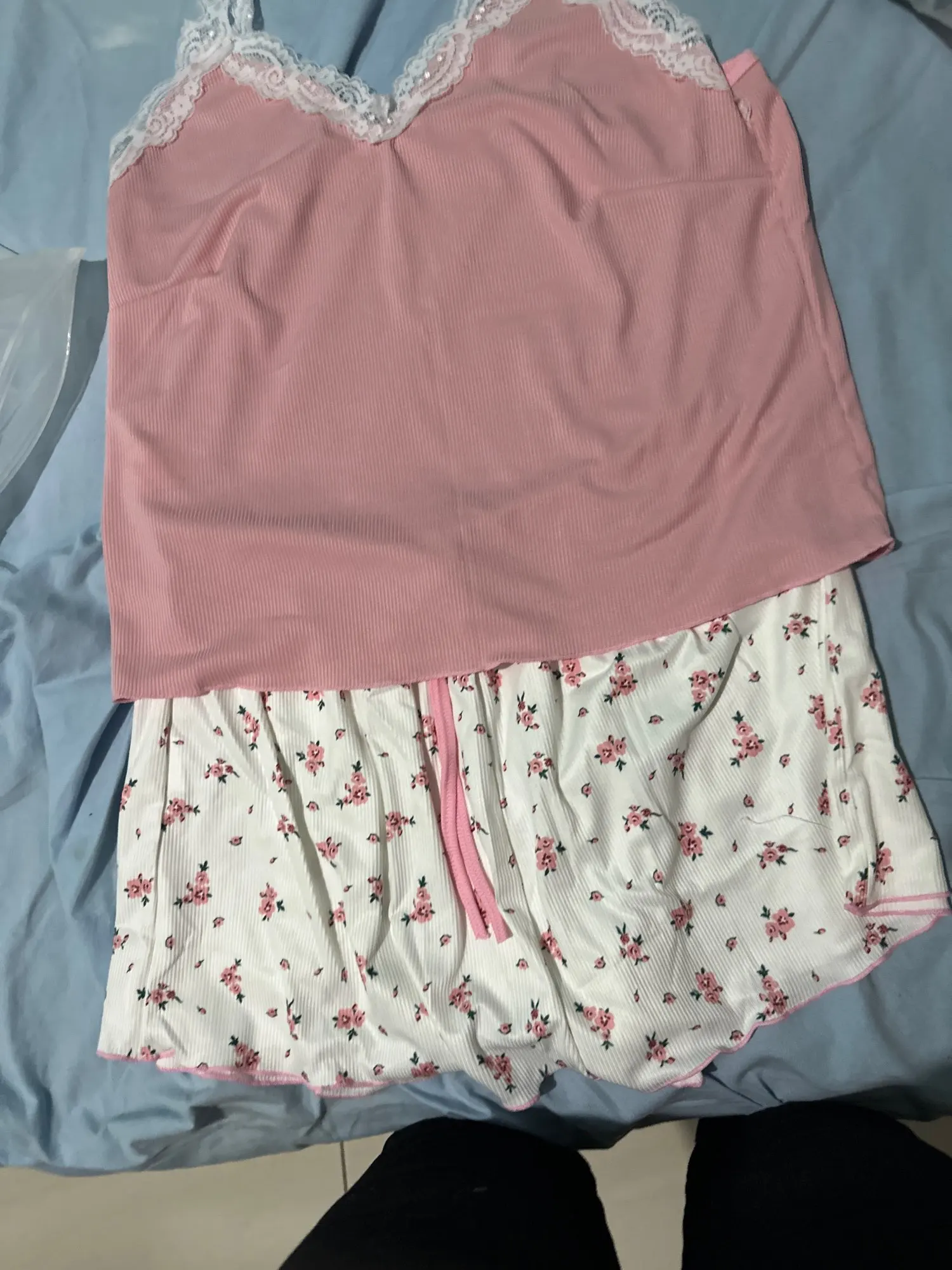 Indulge in luxurious comfort with our elegant pajama set, featuring a delicate lace patchwork design and a flattering V-neck camisole. Crafted from a soft blend of polyester and spandex, these shorts offer a relaxed fit perfect for autumn nights. Available in stunning blue, khaki, and pink, this stylish loungewear is a must-have for every wardrobe.