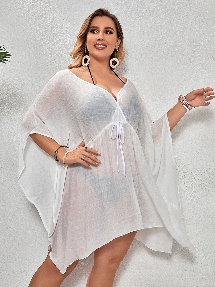 Plus Size Batwing Sleeve Bikini Wrap – Elegant Summer Cover-Up