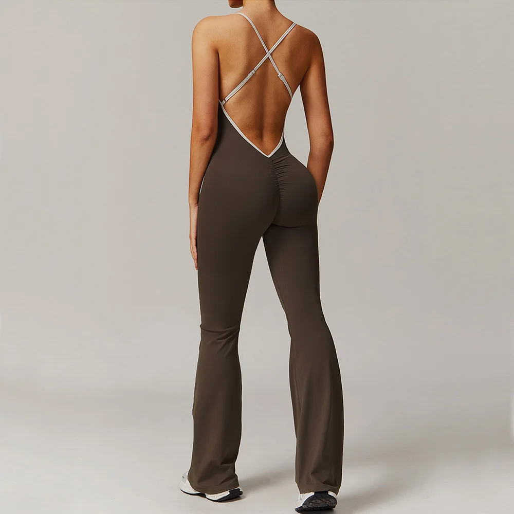 Luxe V-Back Athletic Jumpsuit – Moisture-Wicking Workout Romper