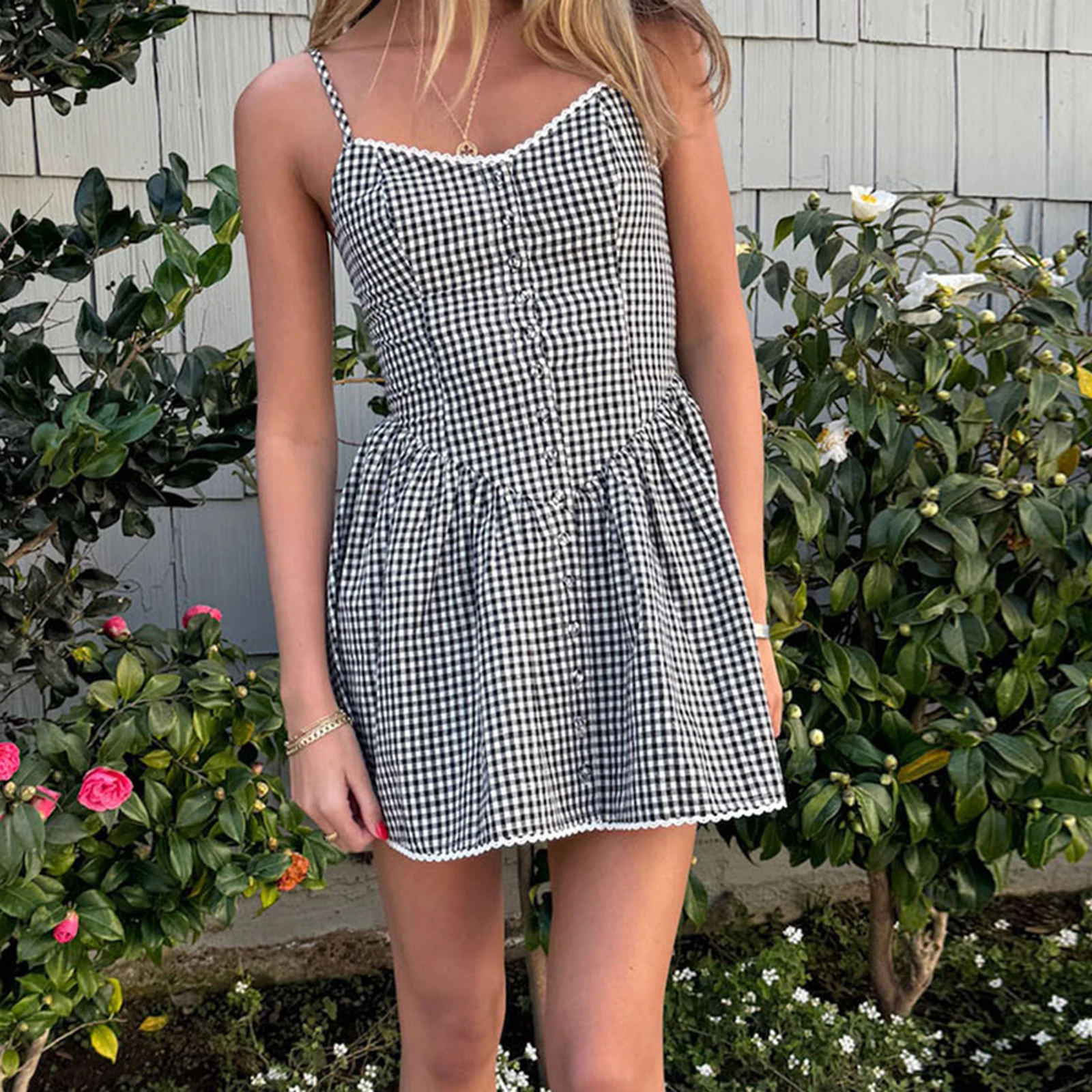 Crafted for the modern woman who values both style and comfort, the Open Back Plaid Cami Dress presents a slim fit silhouette that gently contours the natural waist. Its lightweight polyester fabric with slight stretch ensures ease of movement, making it ideal for spring and summer wear.