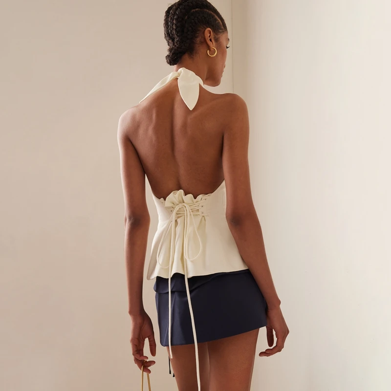 Chic Backless Halter Crop Top for Stylish Summer Outings