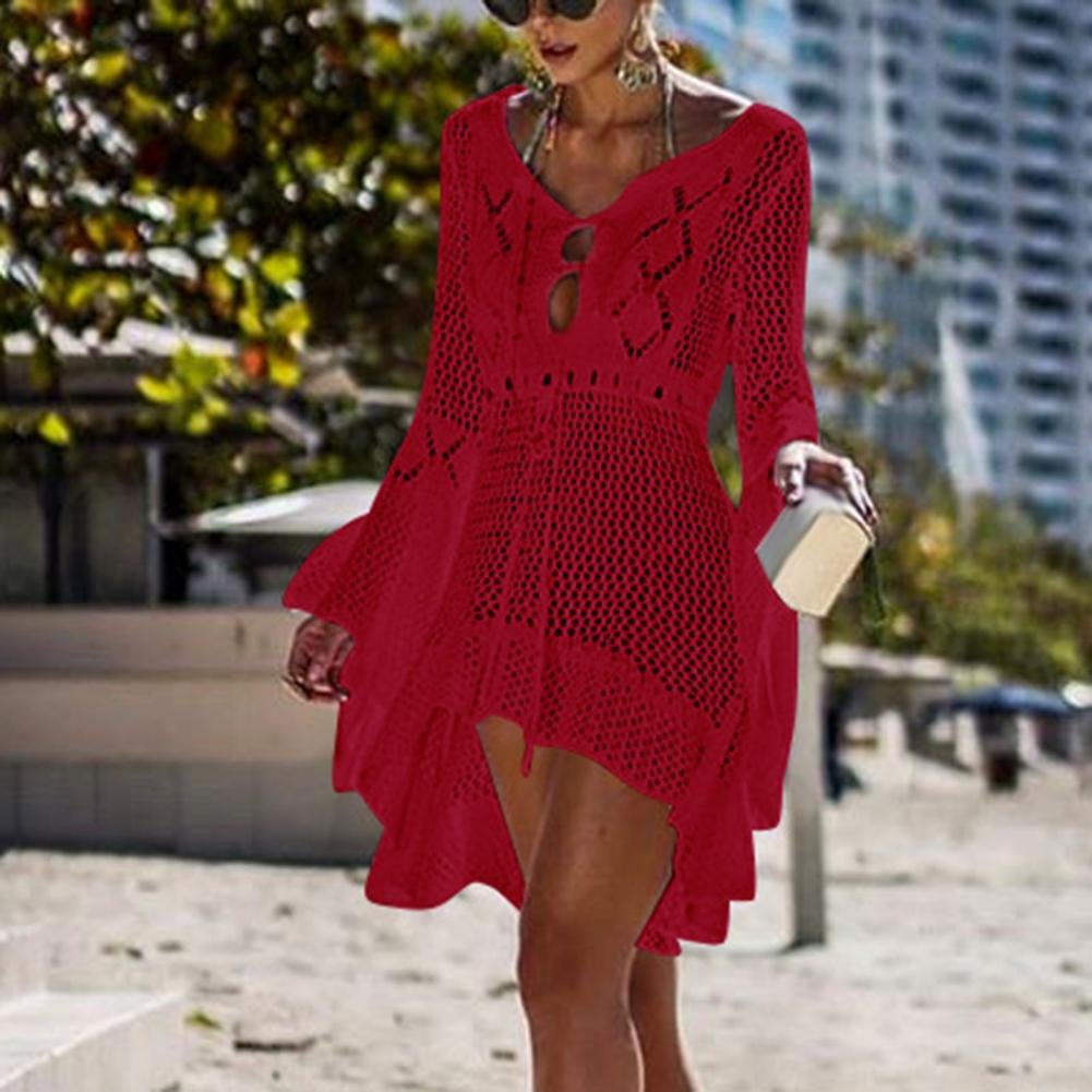 3 reviews for Flared Sleeve Knit Beach Coverup Dress – Hollow Crochet Style