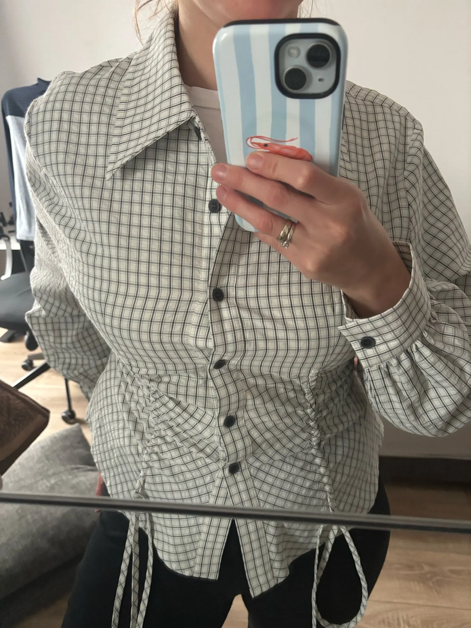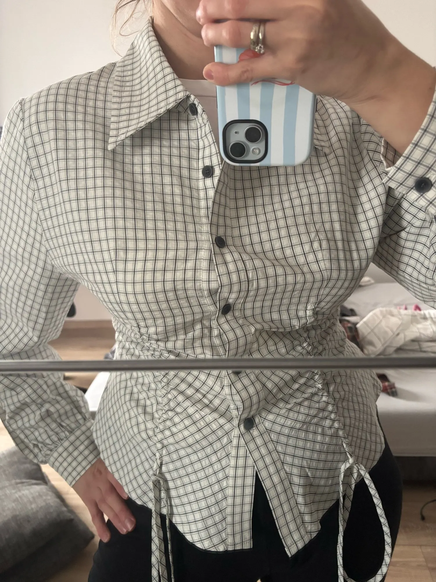 7 reviews for Women’s Black Plaid Long Sleeve Shirt with Waist Tie