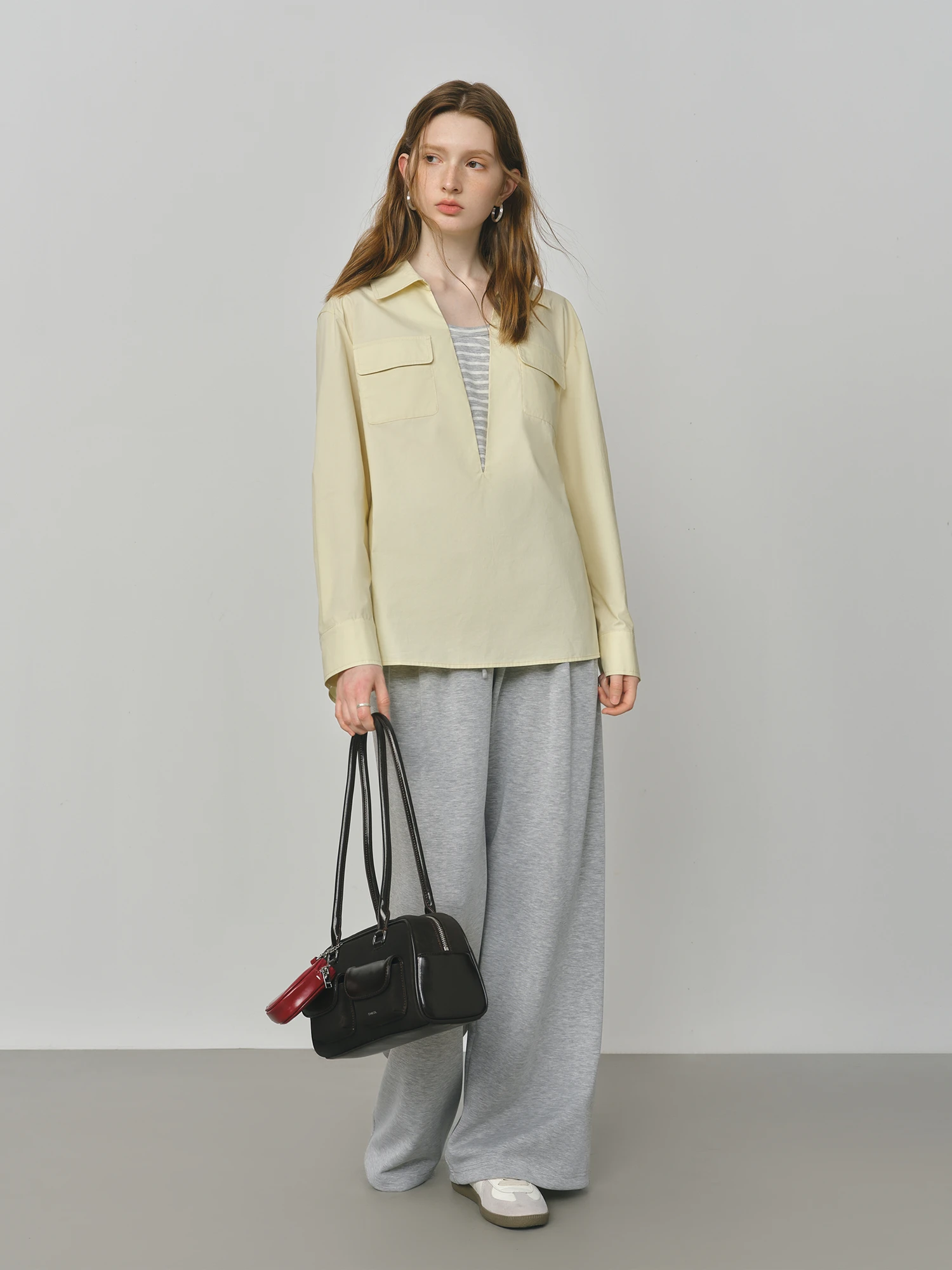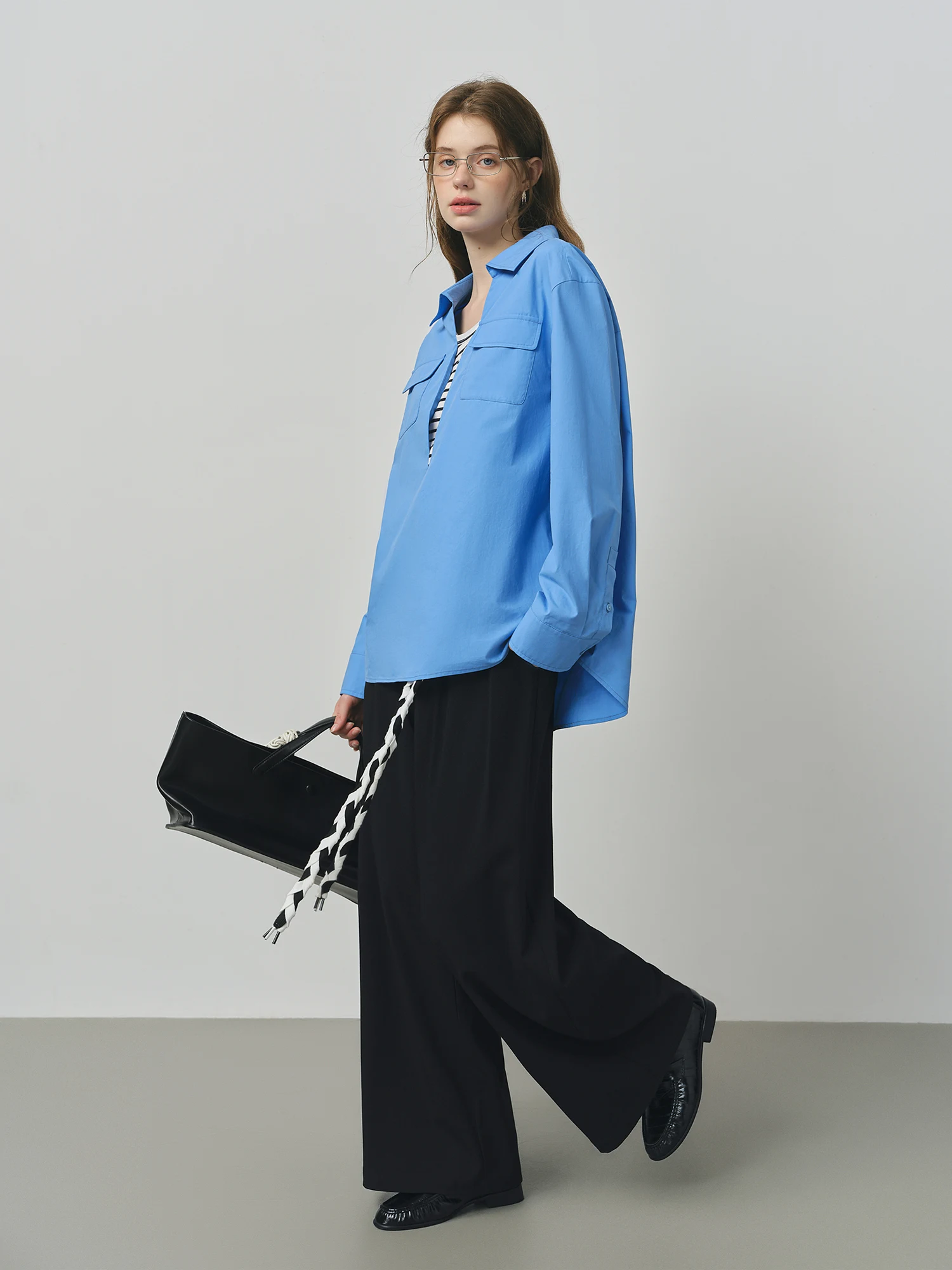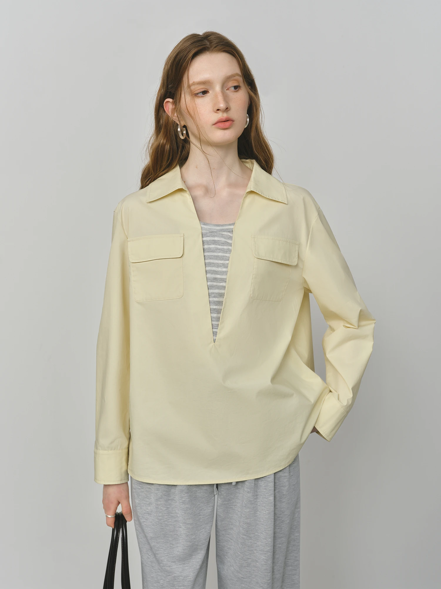 This Women’s Color Block Layered Pullover Shirt is designed for those seeking a refined yet relaxed fit for autumn. Crafted from 100% cotton chiffon, it offers a lightweight texture with slight stretch for comfortable all-day wear. The regular fit and turn-down collar present a polished silhouette suitable for office environments.