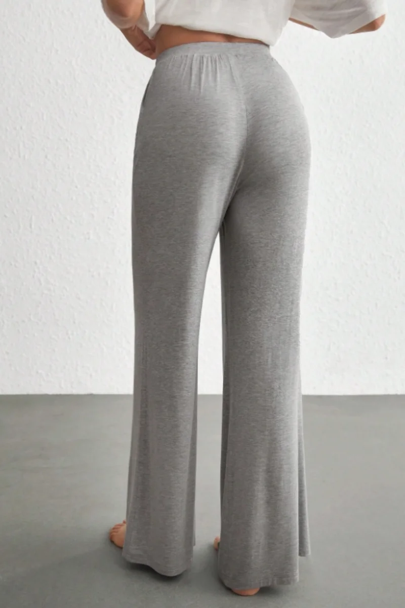 Step into elegance with our Wide Leg Jeans, designed for the modern woman. Crafted from soft jersey fabric, these ankle-length pants offer a relaxed fit with a mid-rise elastic waist for ultimate comfort. Available in timeless black, dark grey, and gray, they are the perfect choice for cozy autumn days at home. Embrace your unique fashion sense with this versatile wardrobe essential.
