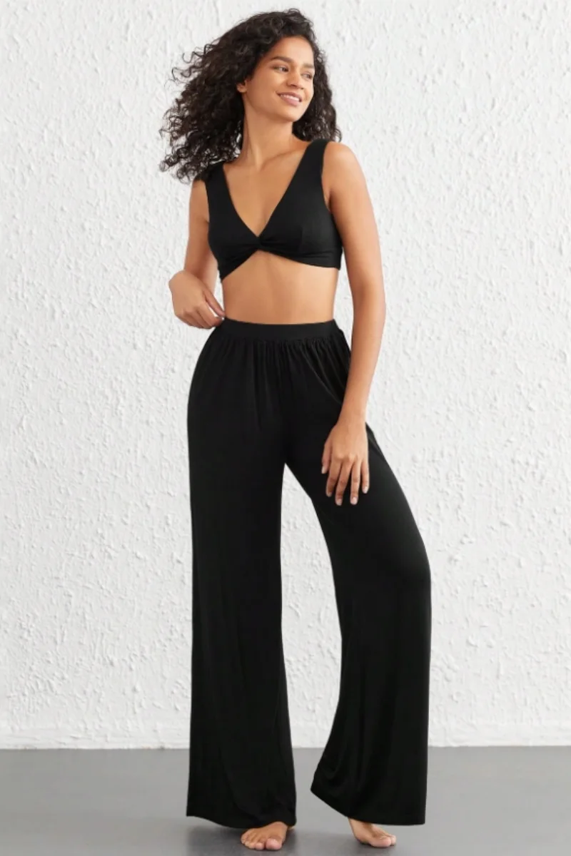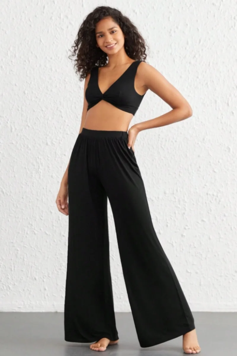 - Fluid wide-leg style that flatters every figure