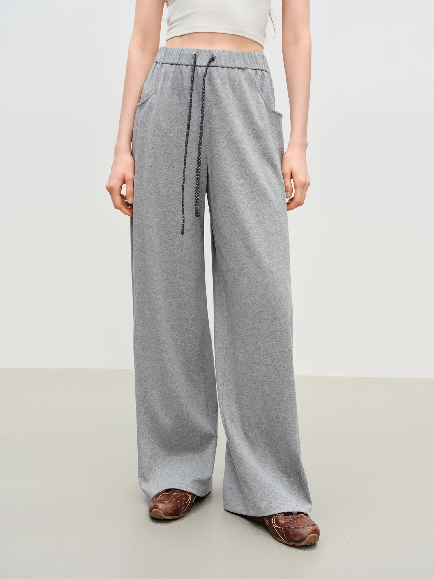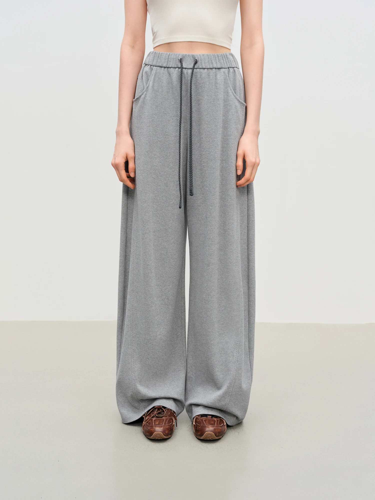 - Wide-leg pants: High-waisted with a drawstring closure and pockets for functional ease.
