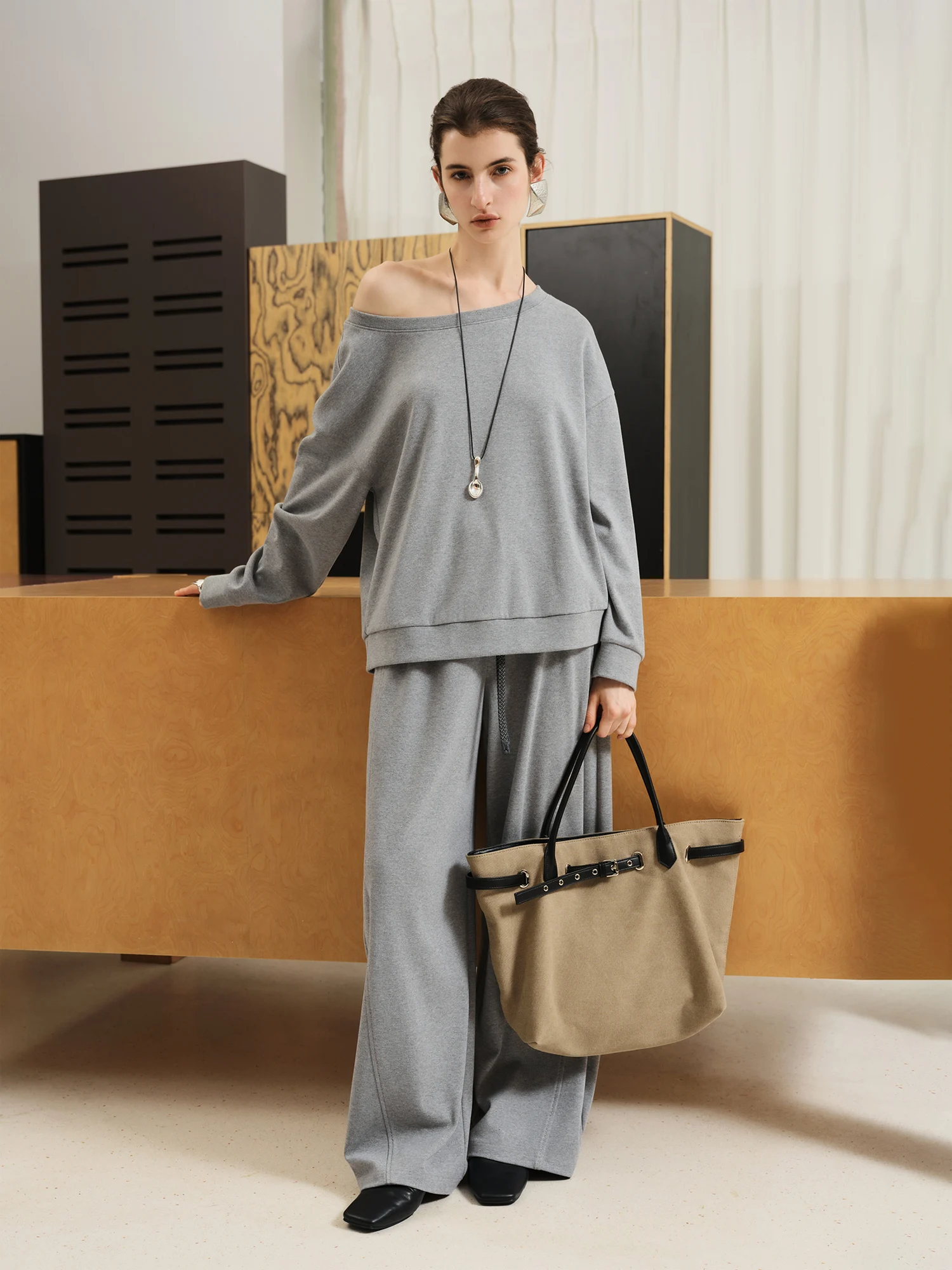 Women’s Grey Off-Shoulder Top and Wide Leg Pants Set
