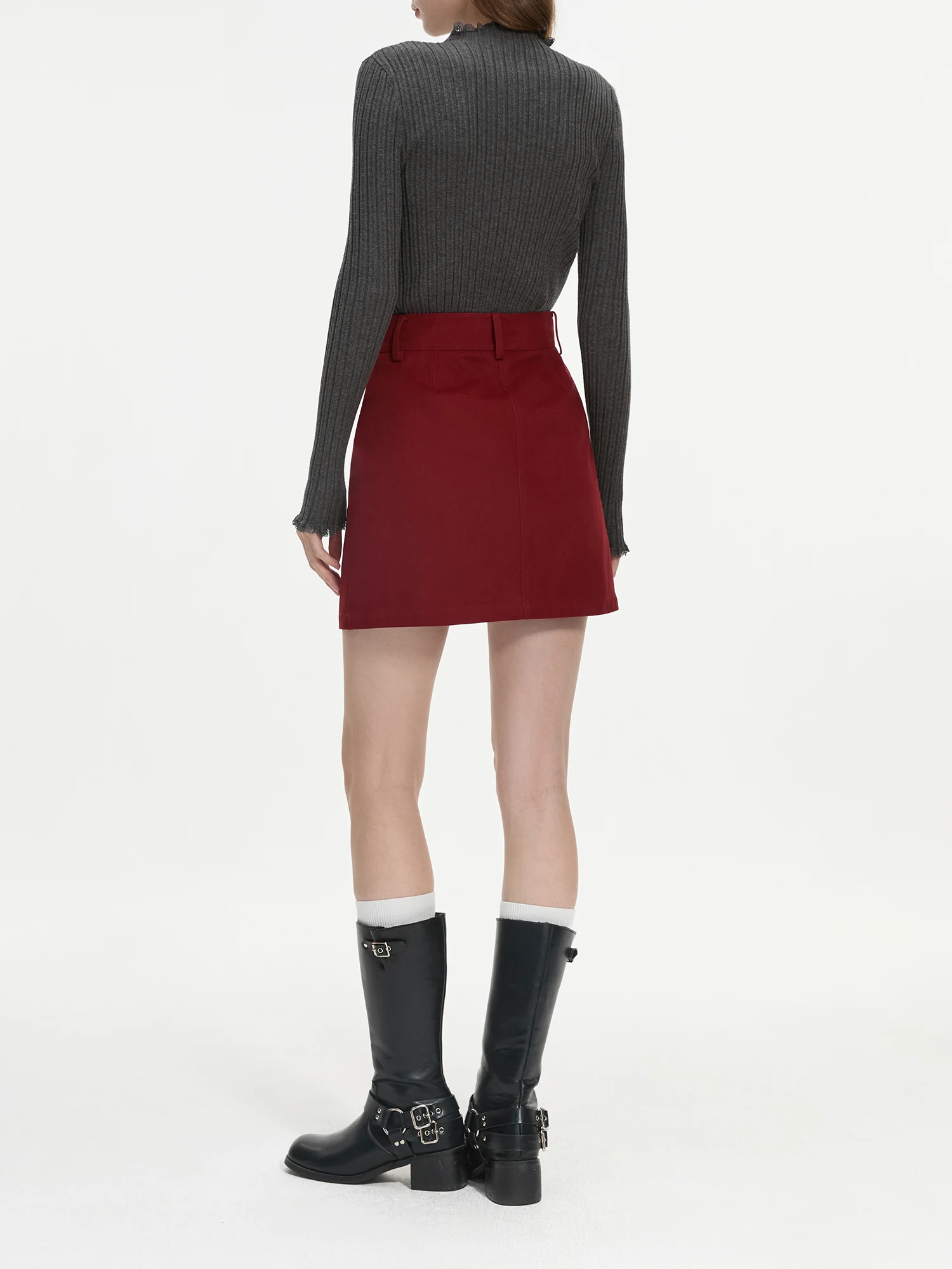 Women’s High Waist Twill Mini Skirt with Two Button Detail