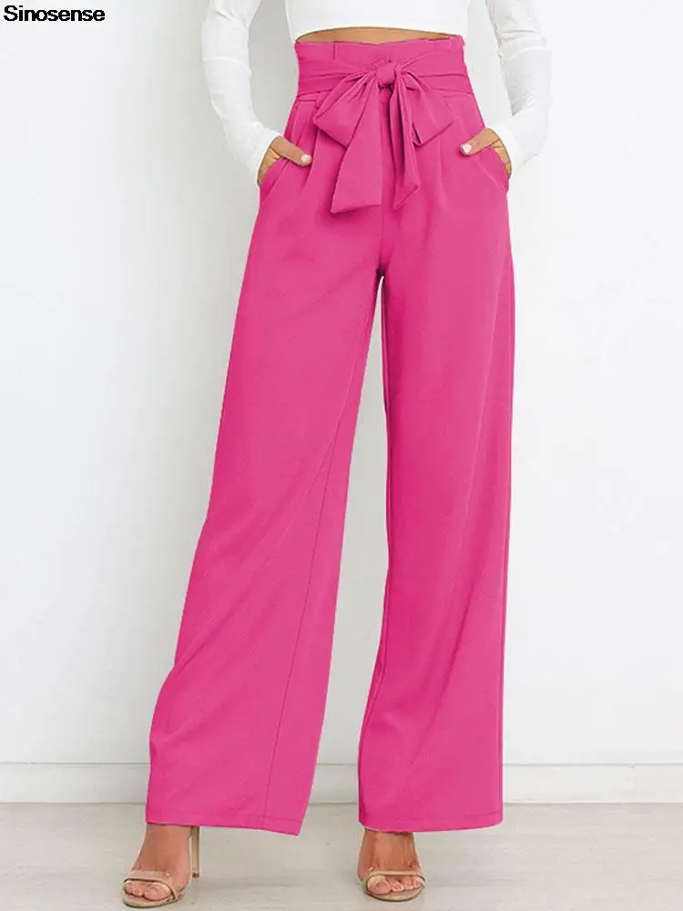 Step into sophistication with these Women's High Waisted Wide Leg Pants. Crafted from a luxurious blend of polyester and spandex, they offer a flattering fit and slight stretch for all-day comfort. Available in a stunning array of colors, these elegant trousers are perfect for the office or any occasion. Complete with pockets and stylish sashes, they effortlessly combine functionality with chic style. Make a statement this season with these versatile, flowy pants that pair beautifully with any top.