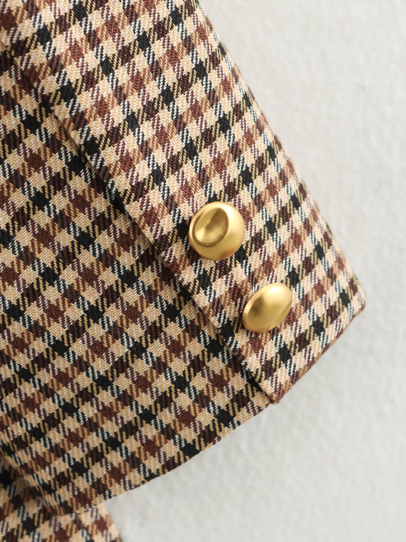 - Pattern: Khaki houndstooth plaid