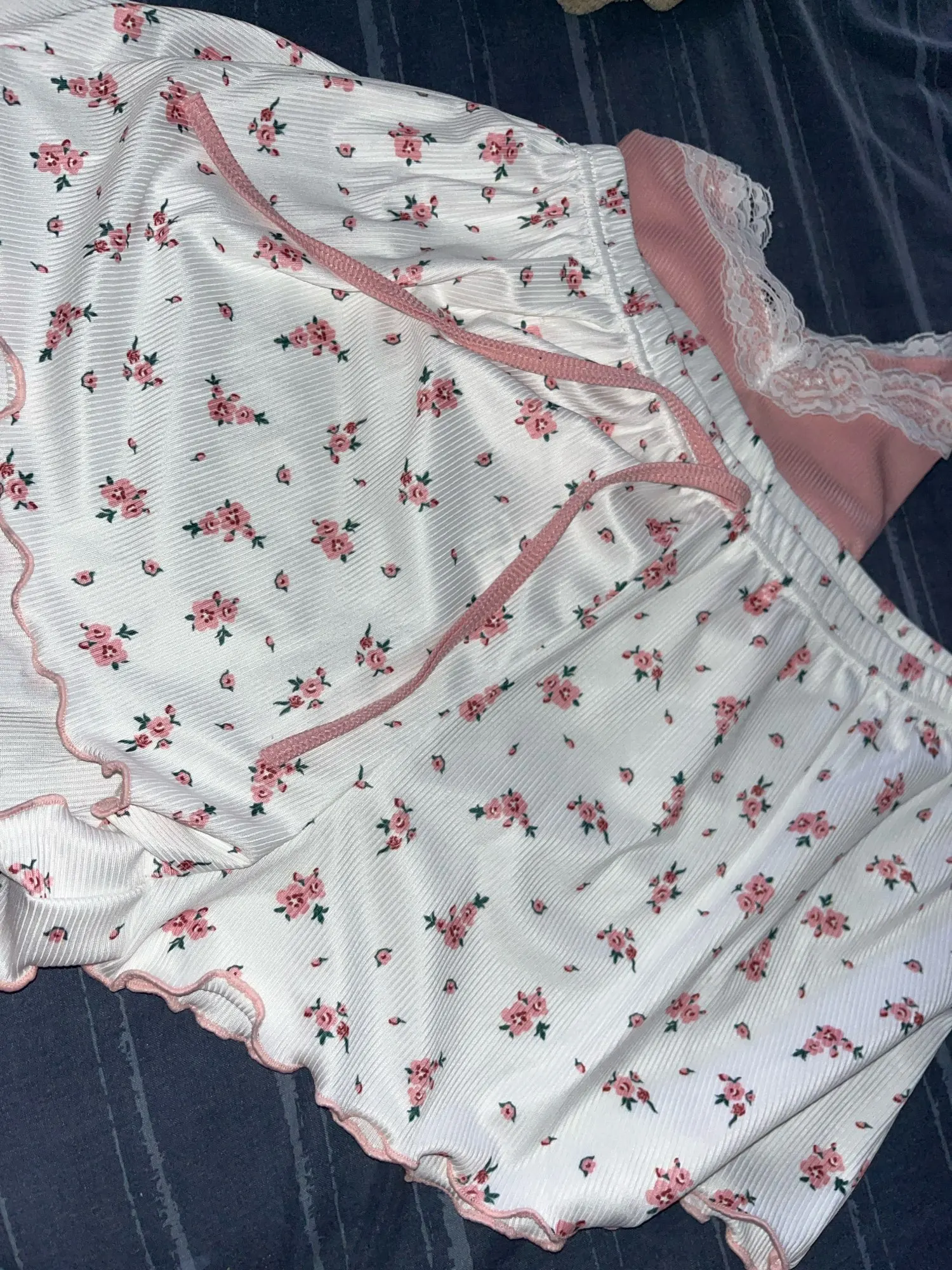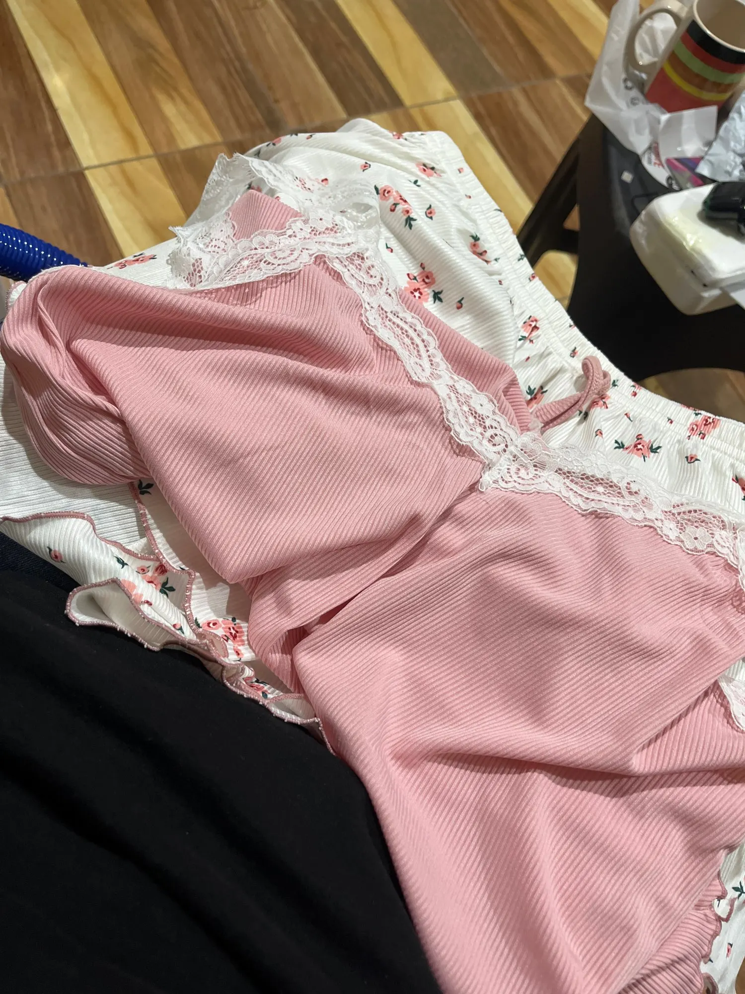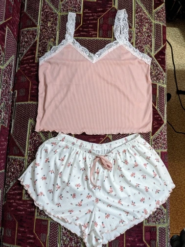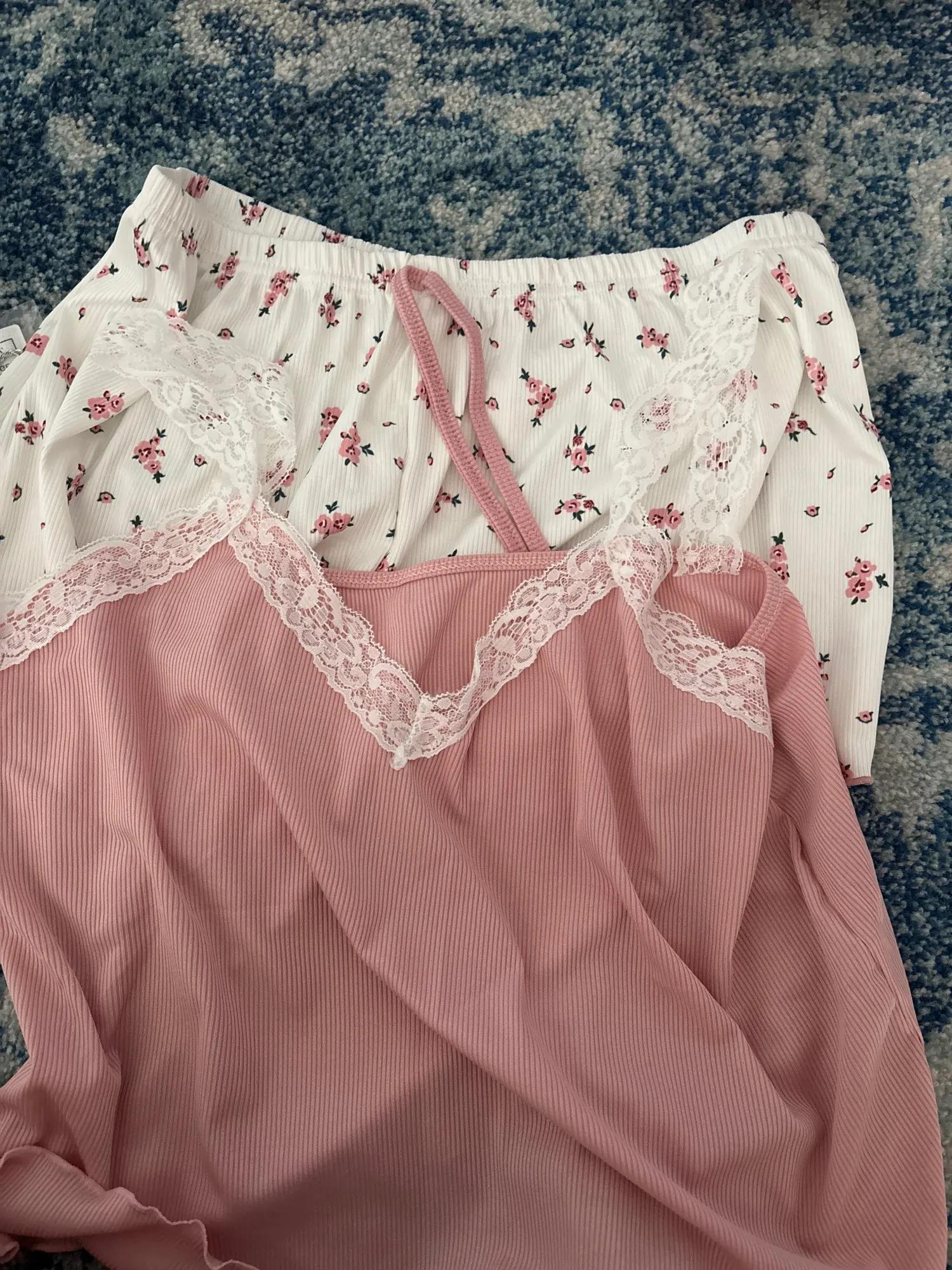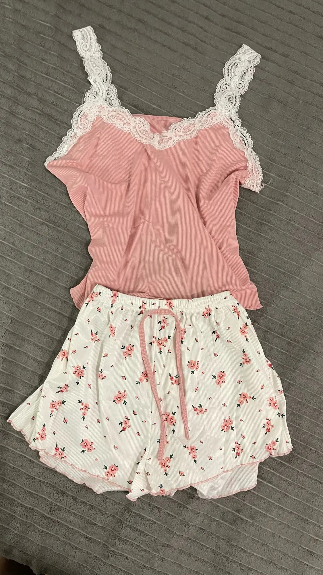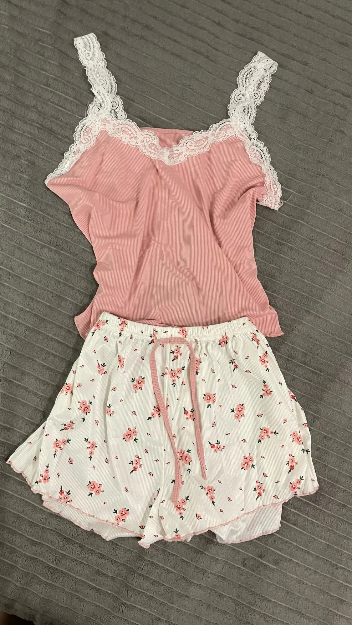 Indulge in Luxury with Our Lace-Trimmed Two-Piece Camisole & Shorts Sleep Set